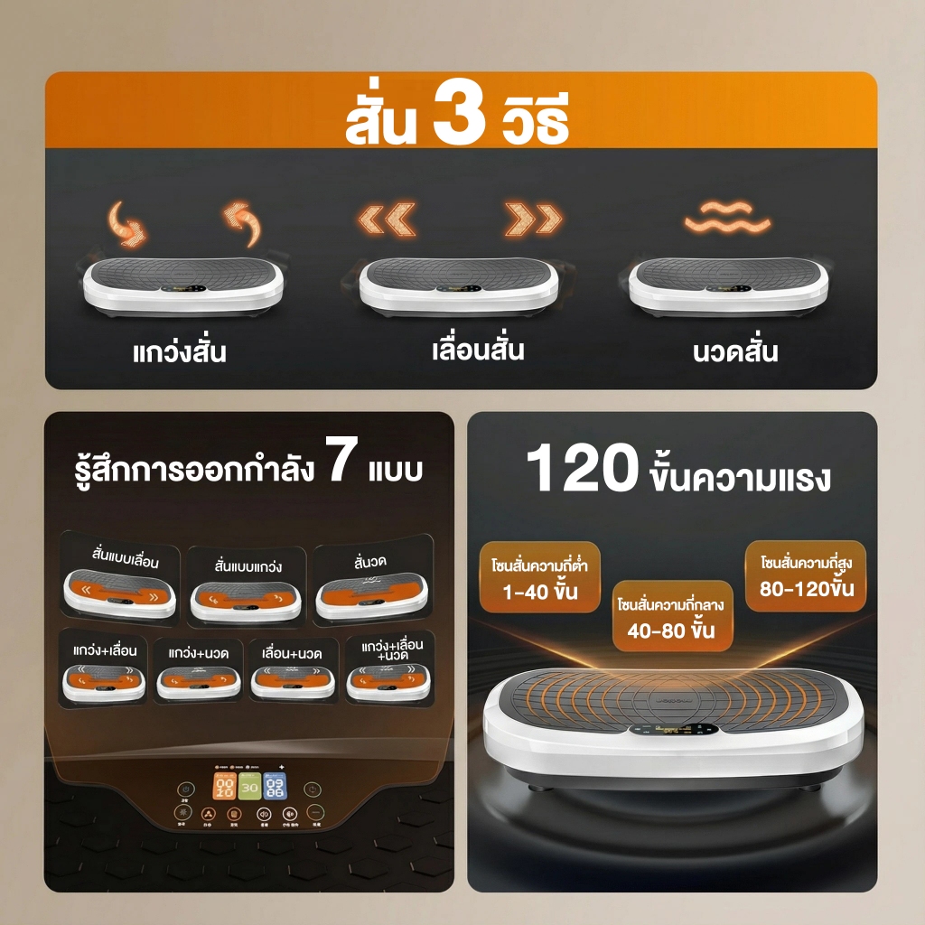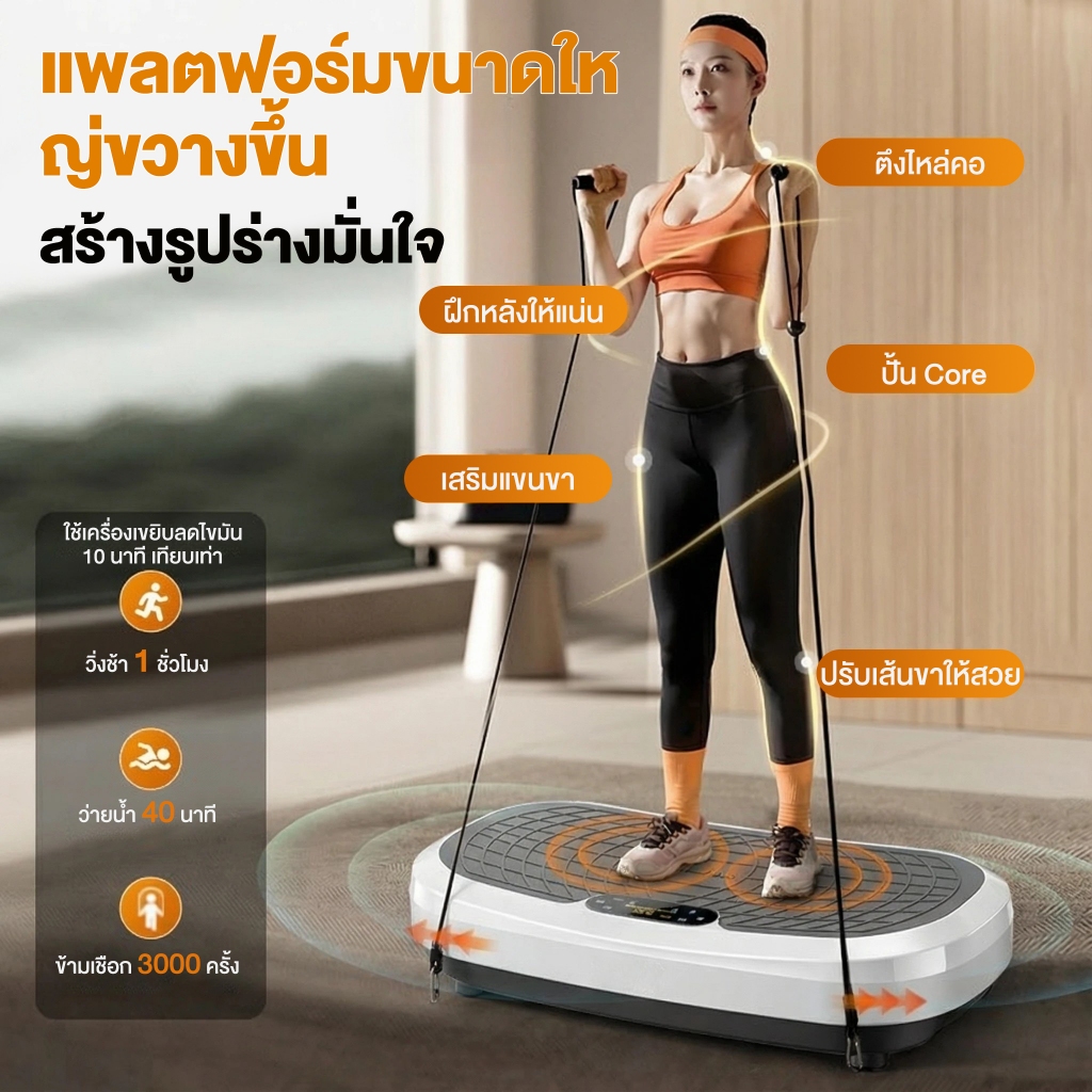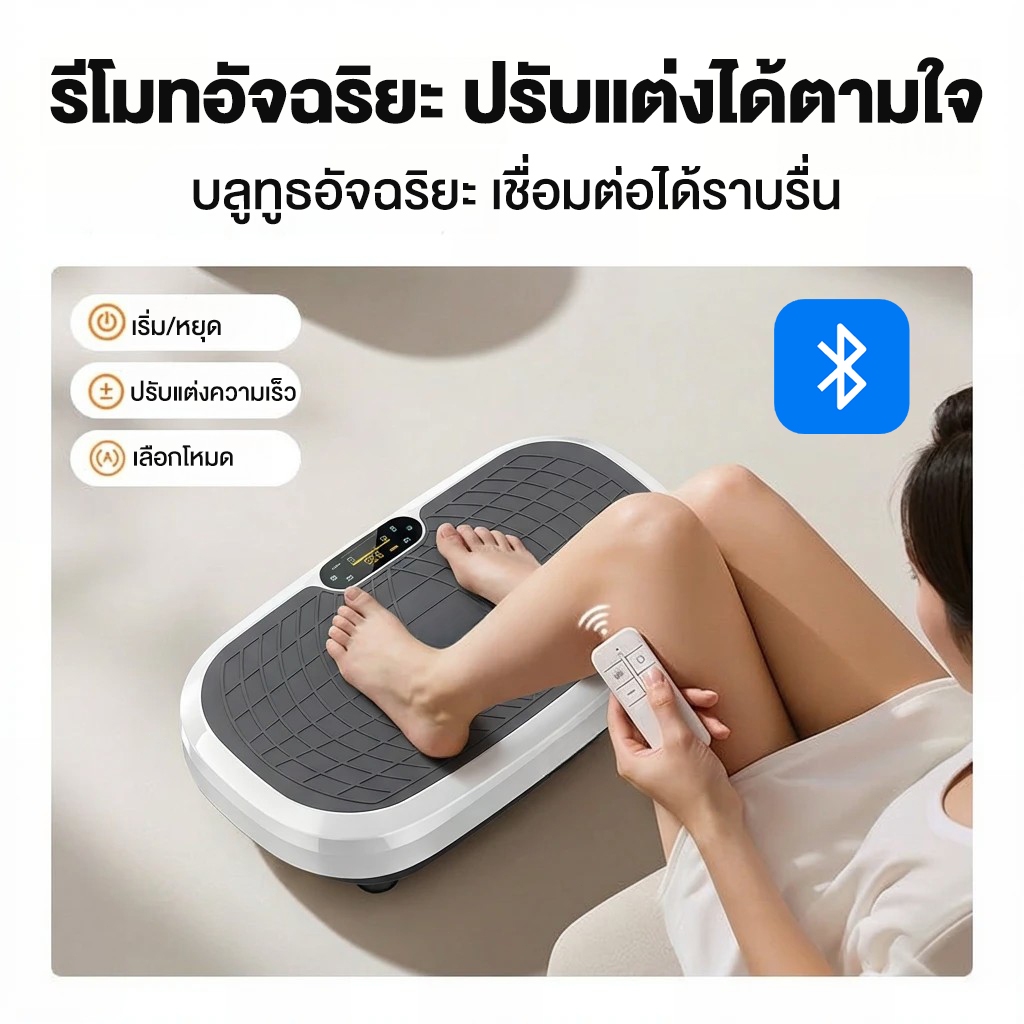 เครื่องสั่นสลายไขมัน กว้าง 75 ซม 750D เครื่องสั่นออกกำลังกาย 120ระดับ เครื่องสั่นลดน้ำหนัก บลูทูธ+รีโมท