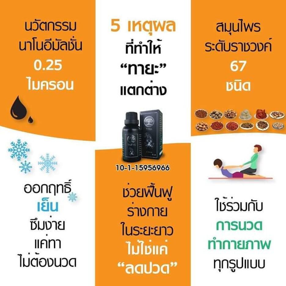 ทายะ TARYA น้ำมันนวดทายะ น้ำมันนวด หลัง คอ เอว สูตรเย็น กลิ่นหอม ไม่เหนียวเหนอะหนะ [ส่งฟรี ]