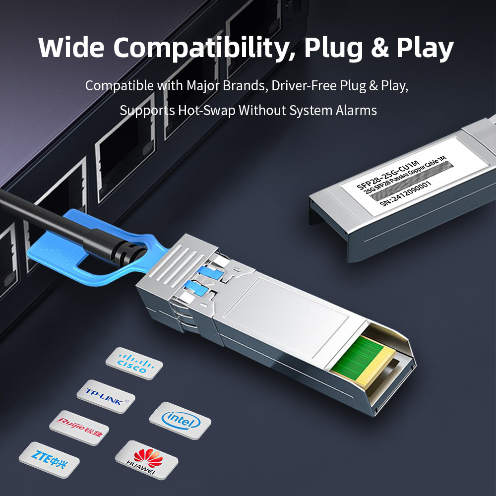 HOOLNX 25G SFP28 Twinax Cable, Direct Mounted Copper(DAC) Passive Cable 0.5-5M, For Ubiquiti,Cisco,Huawei,MikroTik,HP,Intel...สวิตช์ ฯลฯ