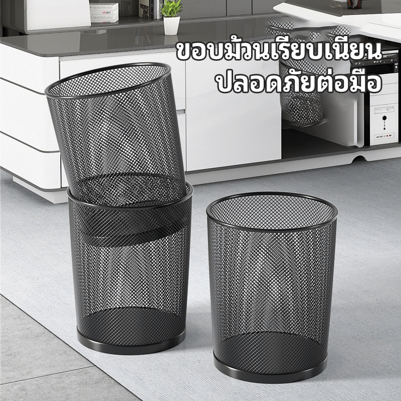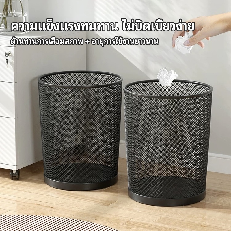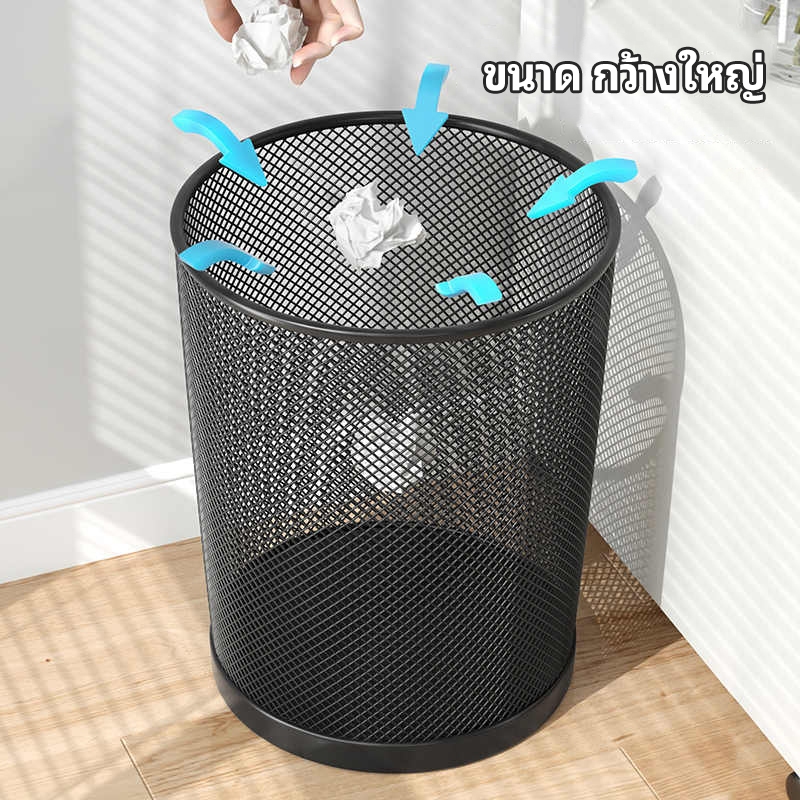 VOVOVA ถังขยะใหญ่ ตะแกรงเหล็กทรงกลมสูง แข็งแรงทนทาน ไม่มีฝาปิด ใช้ใส่เสื้อผ้าใช้แล้วรอซัก เก็บของในห้อง