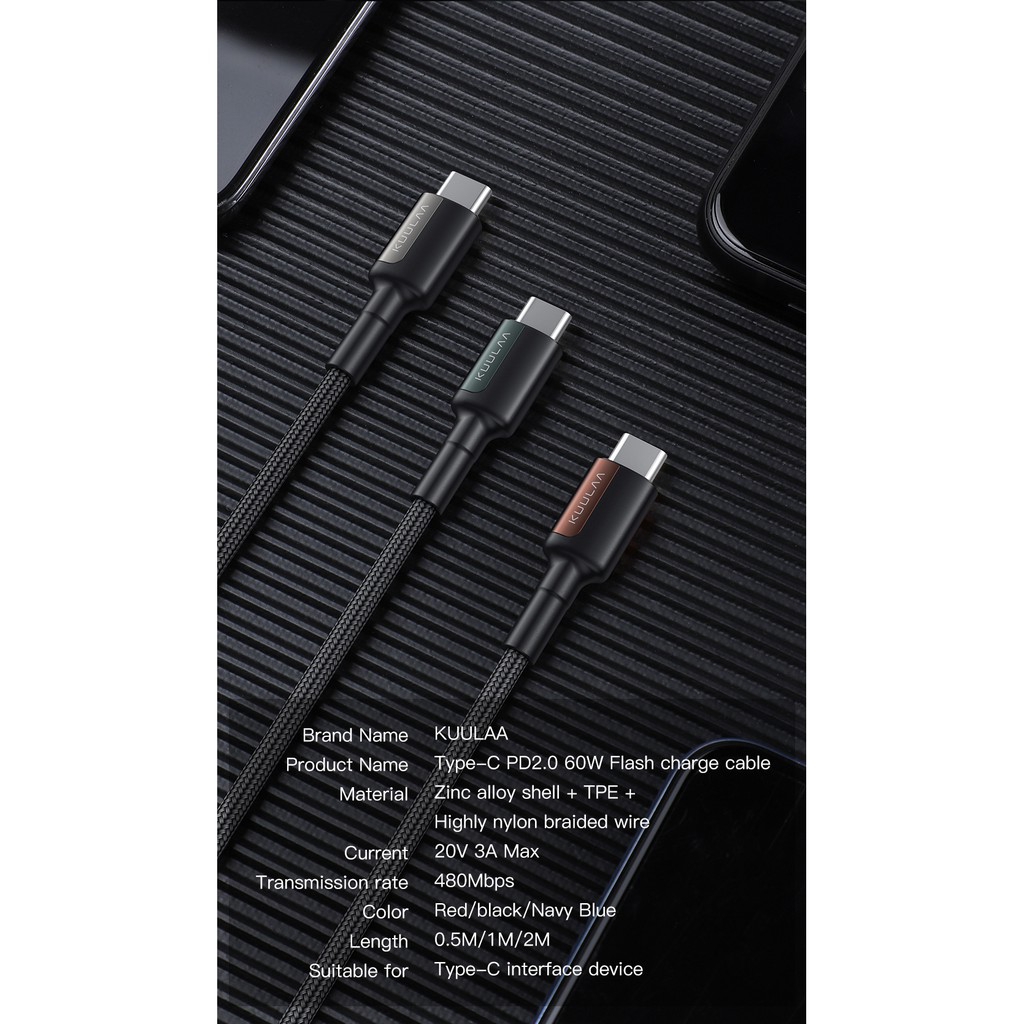 Kuulaa สายชาร์จ Type-C เป็น Type-C แบบชาร์จเร็ว 65W Pd Qc 4.0 ความยาว 0.5 1 2 เมตร สำหรับ Xiaomi Redmi