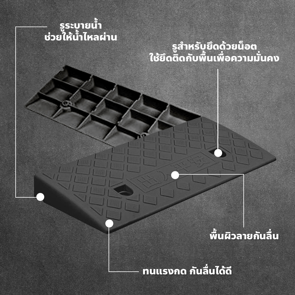 แผ่นยางทางลาด (มีลูกศร) สีดำ มีให้เลือกหลายขนาด เหมาะสำหรับรุกทุกประเภท