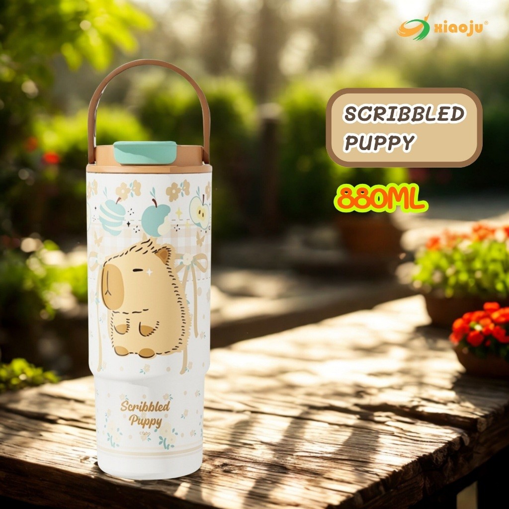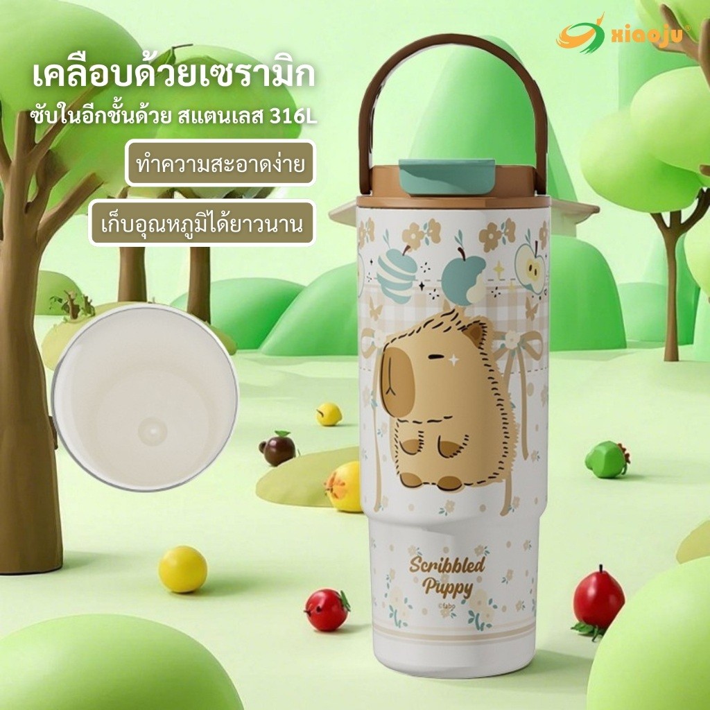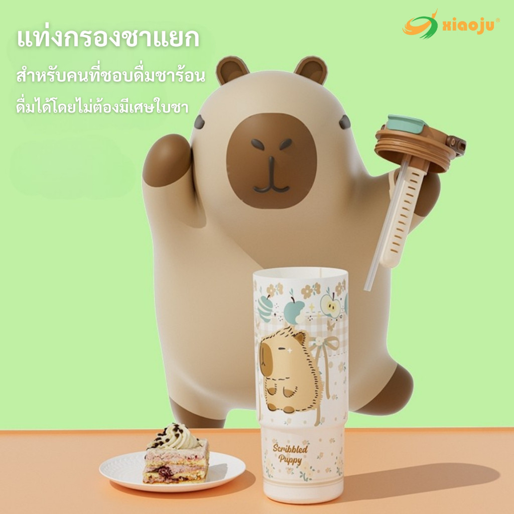 XIAOJU 880ML แก้วหูหิ้ว 2 หัวดื่ม เคลือบเซารามิก พร้อมกรองชา SUS316L ทนทานไม่กัดกร่อน เก็บอุณหภูมิยาวนาน