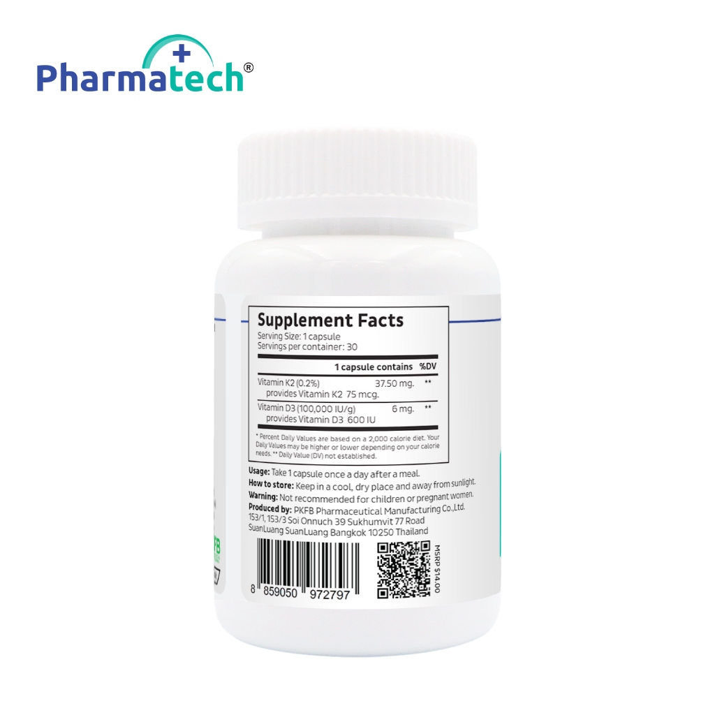 วิตามินเค2ดี3 ฟาร์มาเทค x 1 ขวด Vitamin K2D3 Pharmatech วิตามินเค2 วิตามินดี3 Vitamin D3K2 Vitamin K2 Vitamin D3