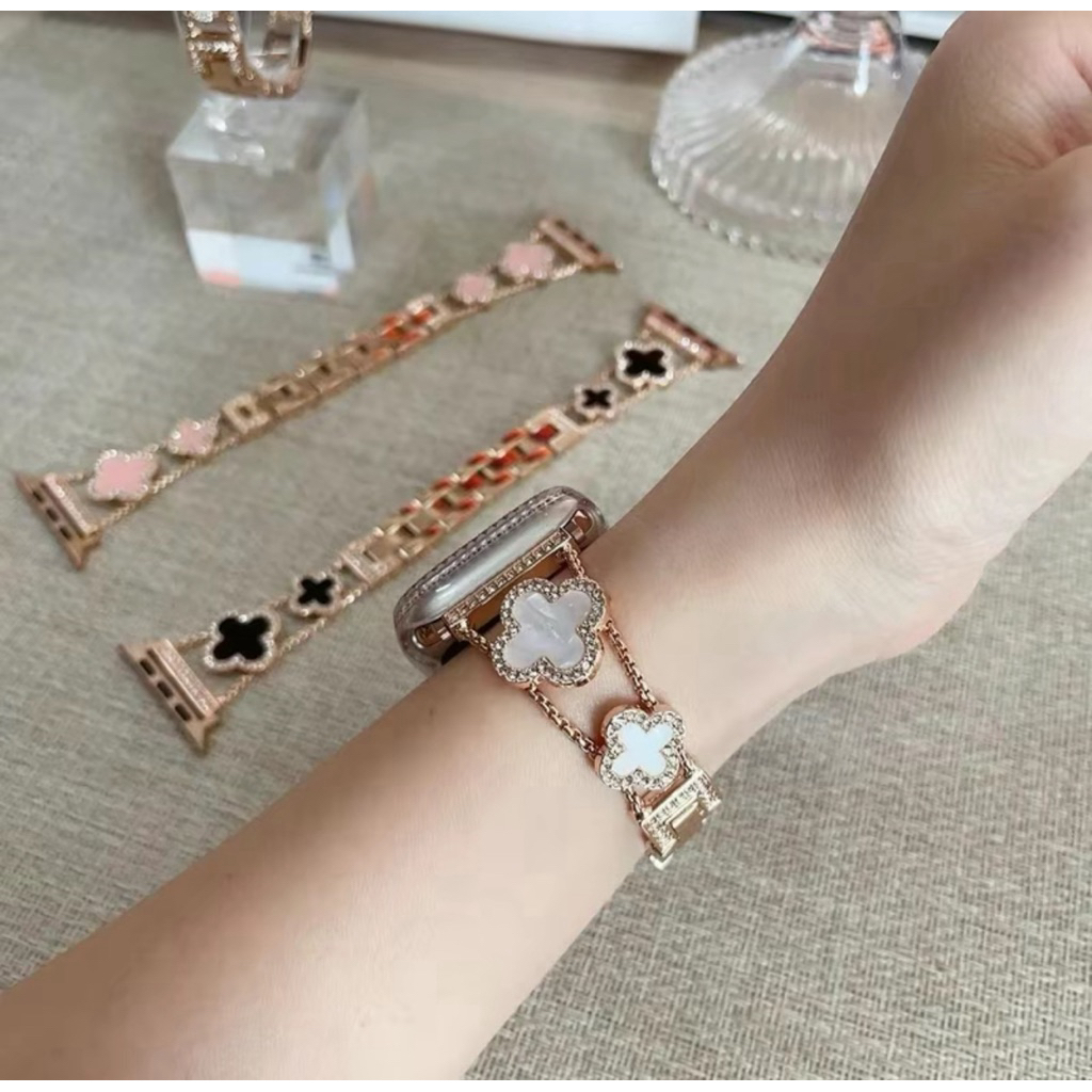 สายนาฬิกา ลายดอกไม้ โซ่สีโรสโกล สายนาฬิการmart watch สายสแตนเลส สามรถปรับขนาดตามข้อมือได้ 38/40/41/42/44/45/46/49mm