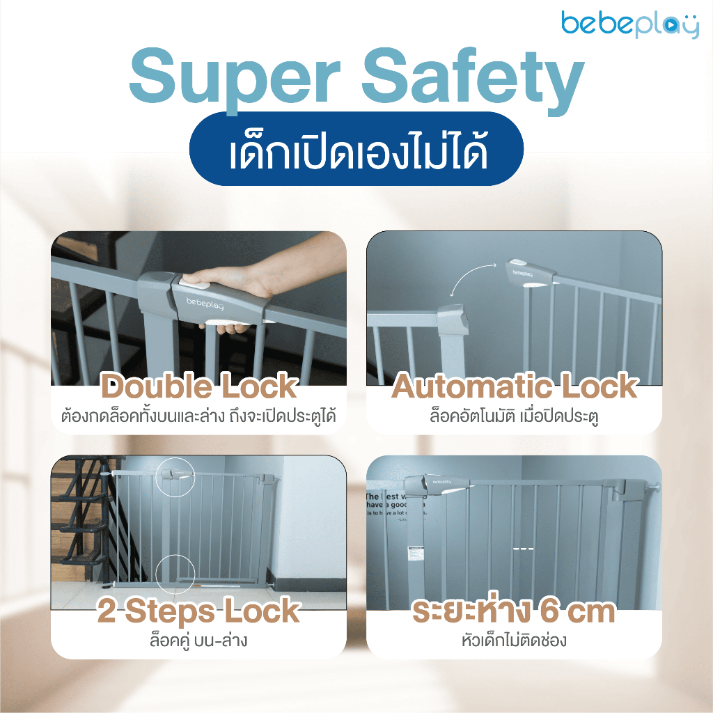 bebeplay ที่กั้นบันได ประตูกั้นเด็ก ที่กั้นเด็ก ประตูกั้นบันได ไม่เจาะผนัง รุ่น Safety Gate