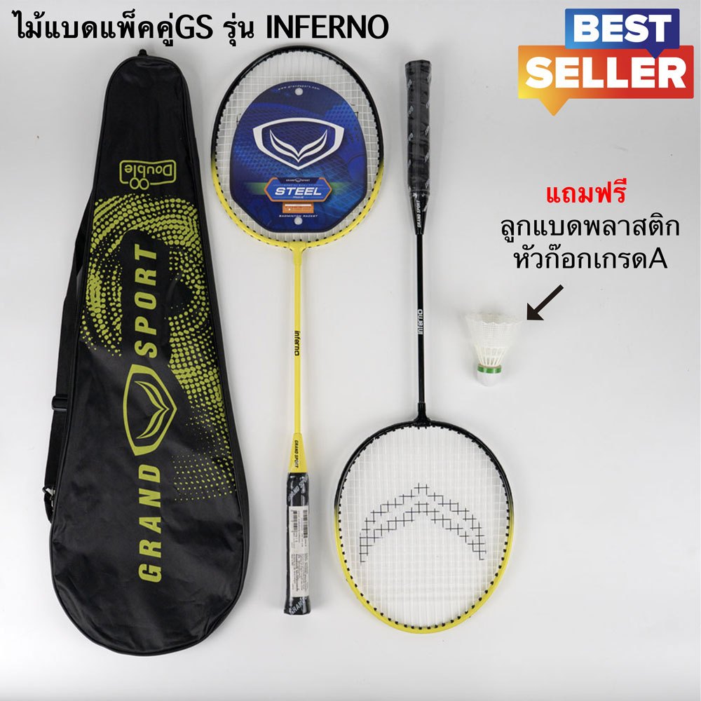 ไม้แบด ,ไม้แบดมินตันแพ็คคู่ ไม้แบดคู่ Grand Sport รุ่น #372214 #372191 #372192# ฟรีลูกแบดพลาสติก เกรดA
