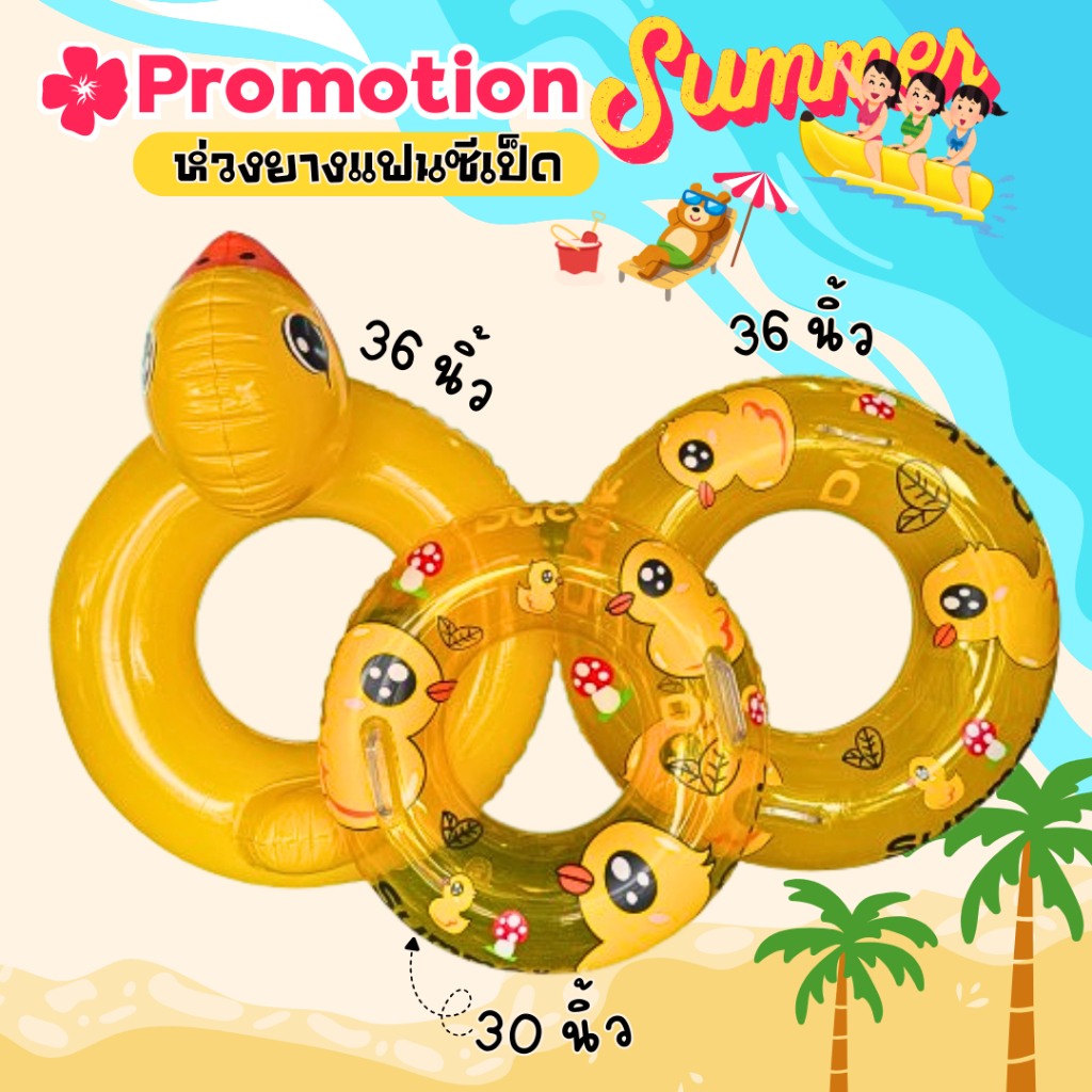 ห่วงยางแฟนซี เป็ดแบบมีหัว มีหูจับ ขนาด 30 และ 36 นิ้ว สีเหลือง แบรนด์ม้าน้ำ (Mahnam)