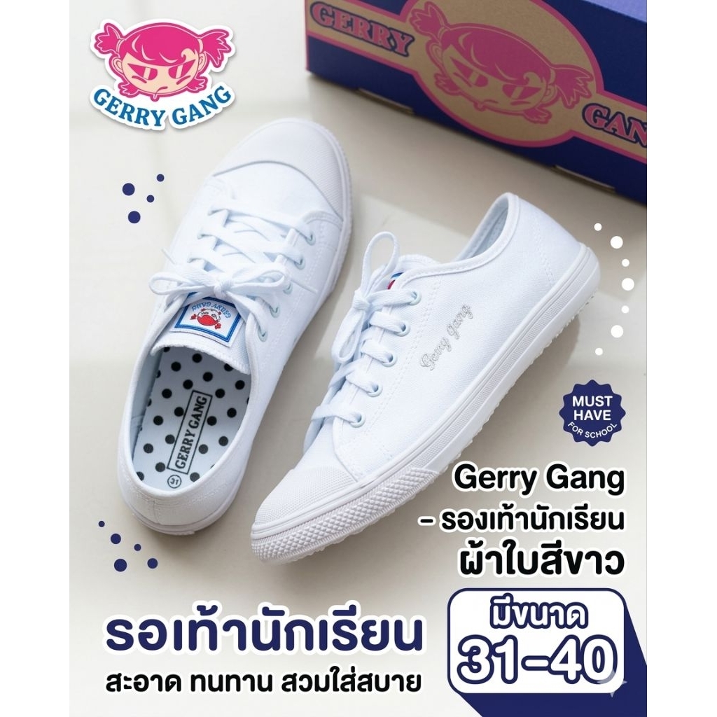 รองเท้านักเรียนผ้าใบสีขาวรุ่นผูกเชือก gerry gang Fw009 สินค้าพร้อมส่งค่ะ
