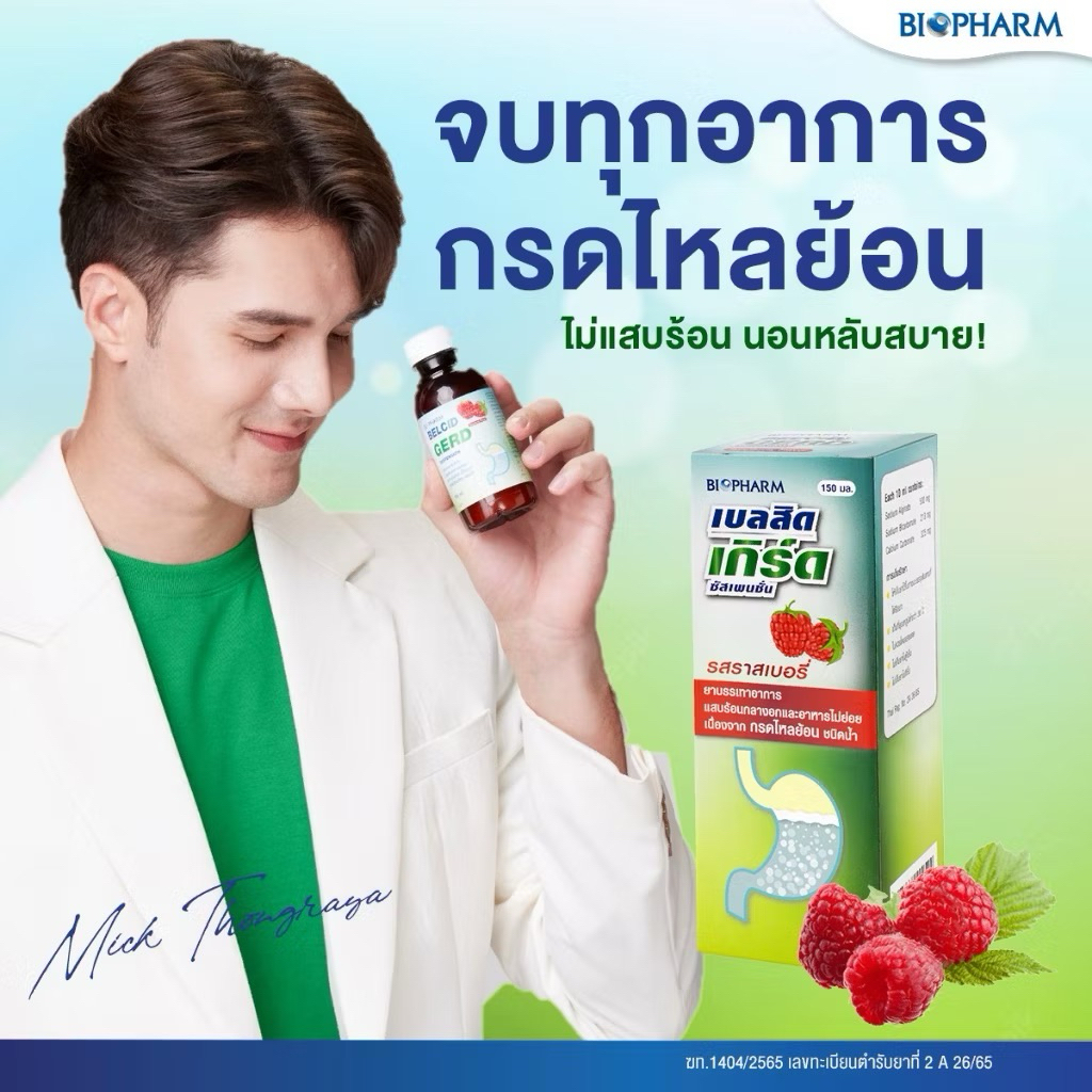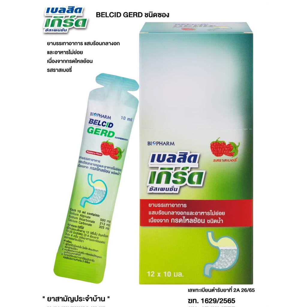Belcid Gerd จาก Biopharm รสราสเบอร์รี่คือความพรีเมียมของยาสามัญประจำบ้านครับ รสชาติราสเบอร์รี่ทำให้ทานง่ายขึ้นมาก กลิ่นหอมสดชื่นไม่เหมือนยาแบบเดิมๆ ตัวยาออกฤทธิ์เร็วช่วยสร้างชั้นเจลยับยั้งการไหลย้อนของกรดในกระเพาะอาหารได้อย่างมีประสิทธิภาพ บรรจุในรูปแบบซองที่พกพาสะดวกพร้อมใช้งานได้ทันทีเมื่อมีอาการ คุ้มค่าและพรีเมียมราคาประหยัดที่สุดสำหรับผู้ที่มีปัญหากรดไหลย้อนครับ
