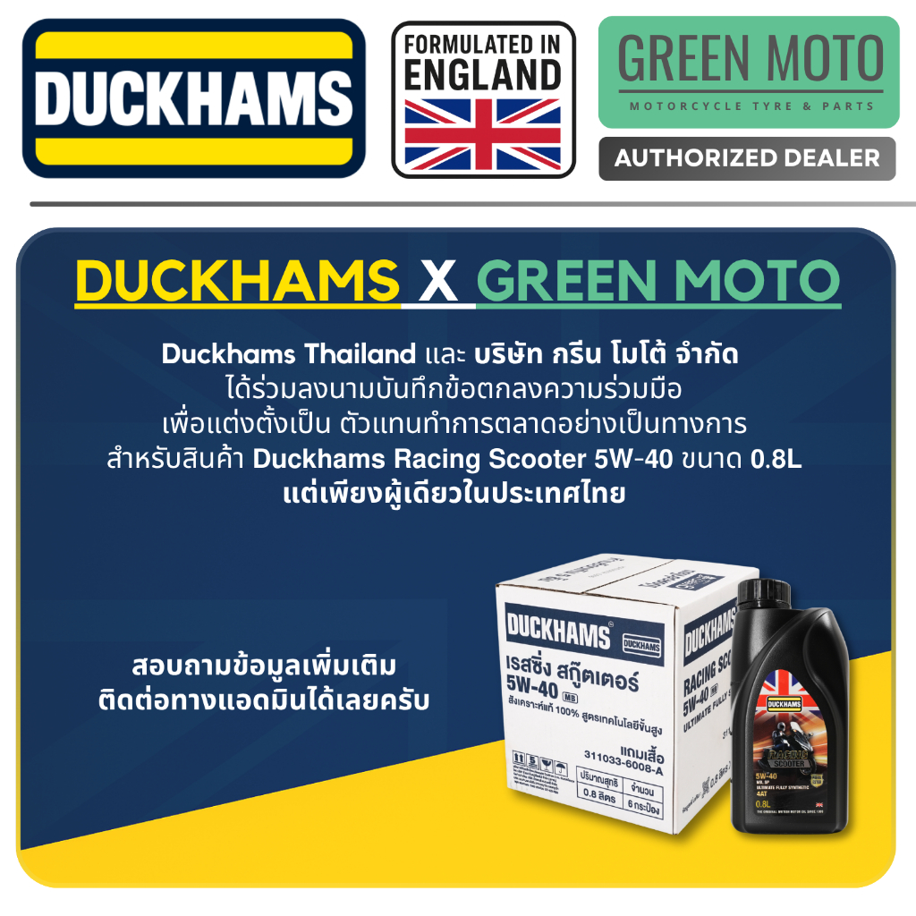 น้ำมันเครื่อง ดั๊กแฮมส์ Duckhams Racing Scooter 5W-40 (0.8L) สังเคราะห์แท้ 100% Polyol Ester สำหรับมอเตอร์ไซค์ออโตเมติก