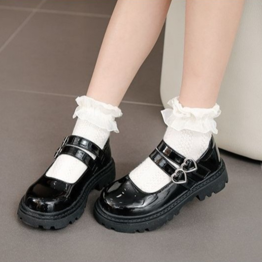 AOOAO รองเท้าหนังสีดำสำหรับเด็กหญิง รองเท้าเจ้าหญิงส้นนิ่มสำหรับใส่ในชีวิตประจำวันหรือการแสดงในโรงเรียน