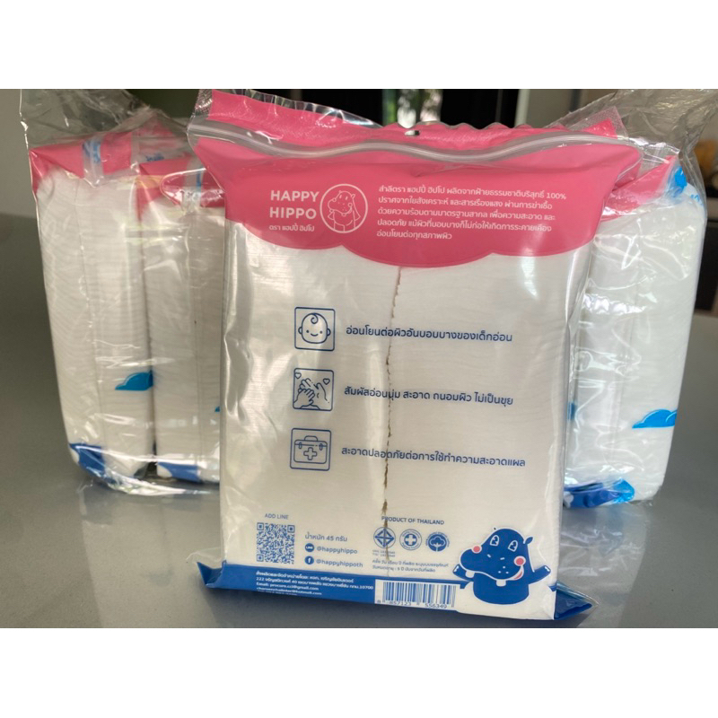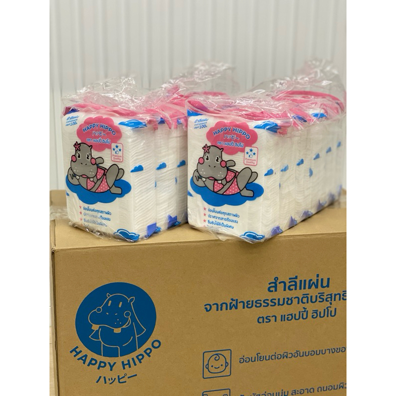 Happy Hippo สำลีแผ่น ทำจากฝ้ายบริสุทธิ์ 100% 6 ห่อ/12 ห่อ