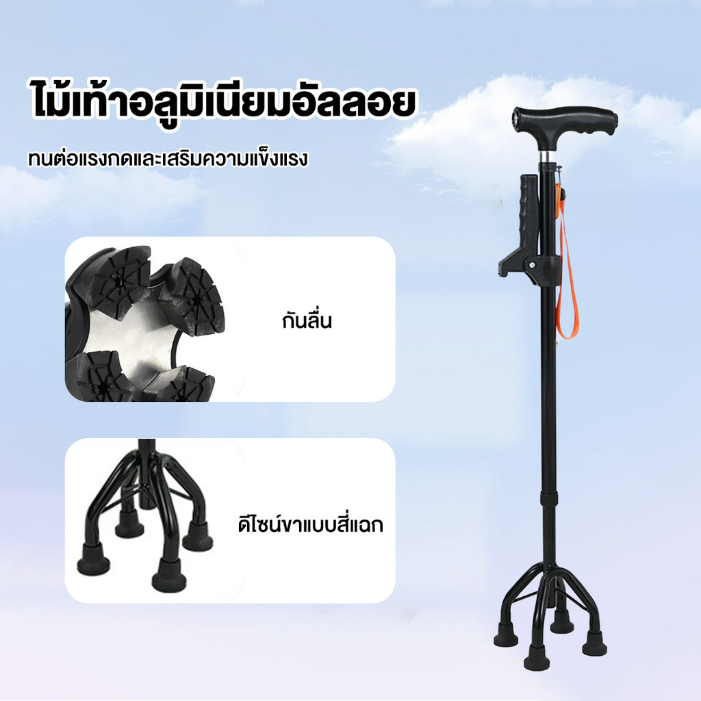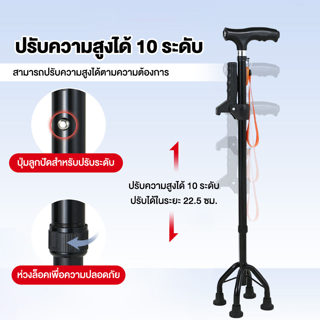 ไม้เท้า ไม้เท้าผู้สูงอายุ ช่วยพยุง 4ขา ปรับได้10 ระดับ ก้านร่ม ไม้เท้าหัดเดิน ไม้เท้าคนแก่ ไม้เท้าช่วยพยุง