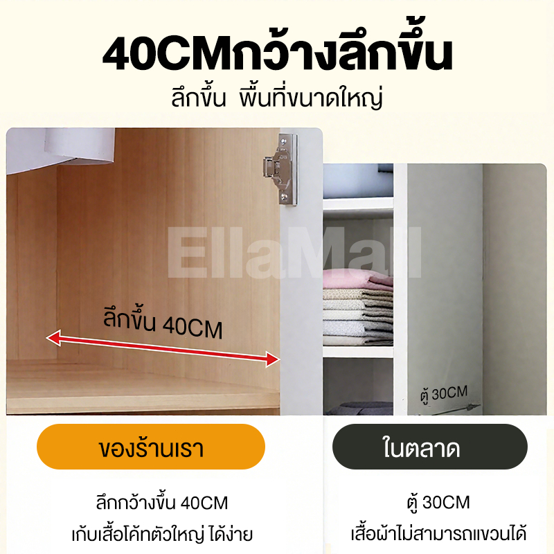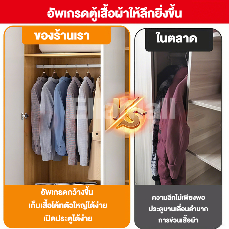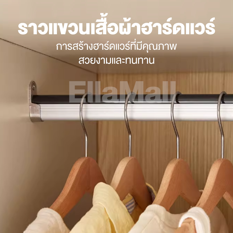 EM ตู้เสื้อผ้าใหญ่ ตู้เก็บเสื้อผ้า เก็บเสื้อผ้าได้มาก หลายชั้น แขวนเสื้อได้ ประกอบง่าย ไม้เนื้อแข็ง ส่งฟรี Wardrobe