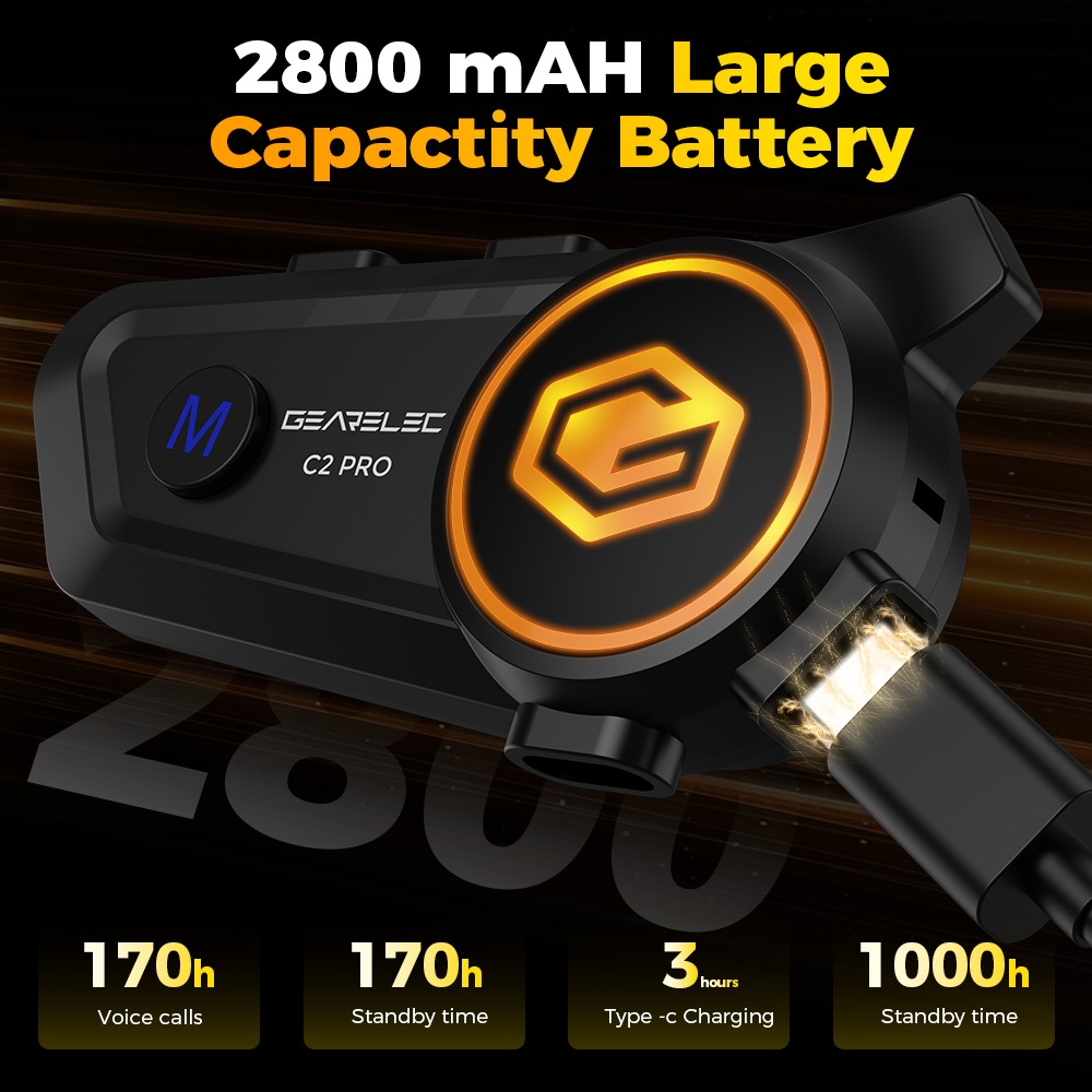 GEARELEC C2 Pro บลูทูธติดหมวก บลูทูธ 5.3 กันน้ำ IPX7 อินเตอร์คอม ลดเสียงรบกวนอัจฉริยะCVC&DSP แบ่งปันเพลง เอฟเฟกต์เสียงไฮไฟ