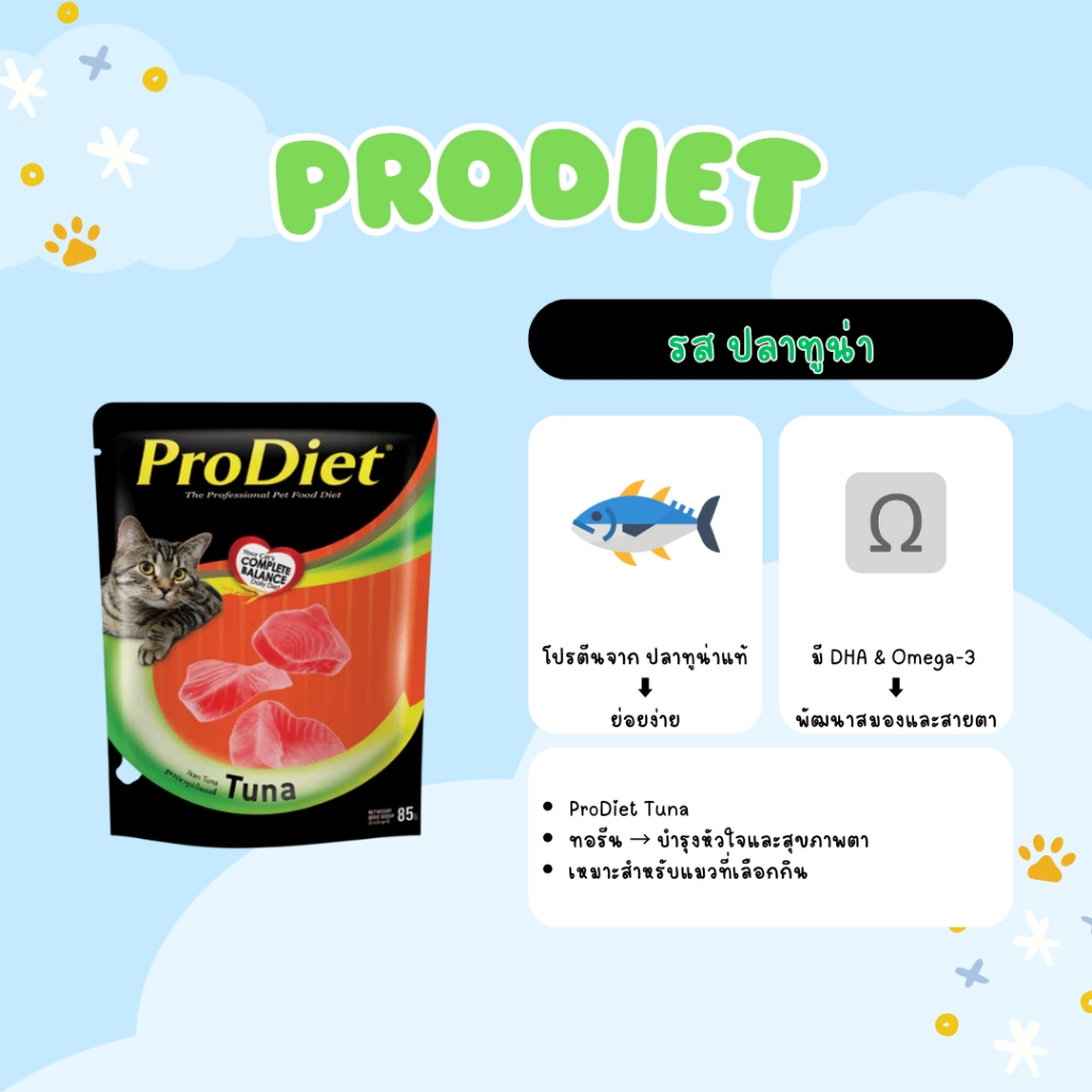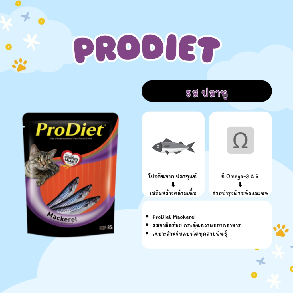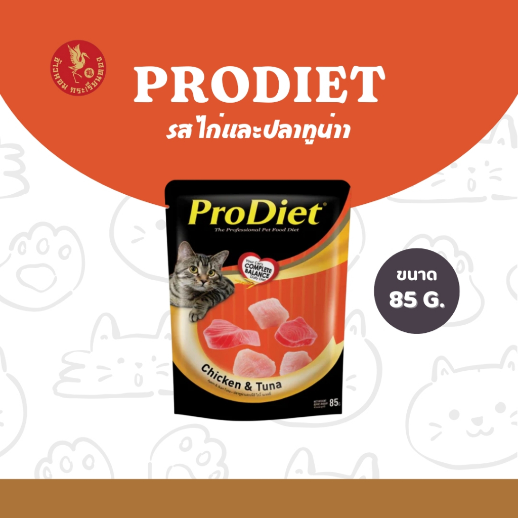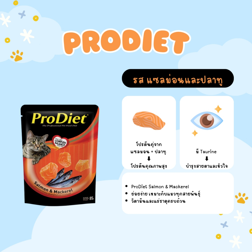 Prodiet โปรไดเอท อาหารเปียกแมว ขนาด 85g สูตรมาตรฐาน ( 12 ซอง ) อาหารเปียก อาหารแมว