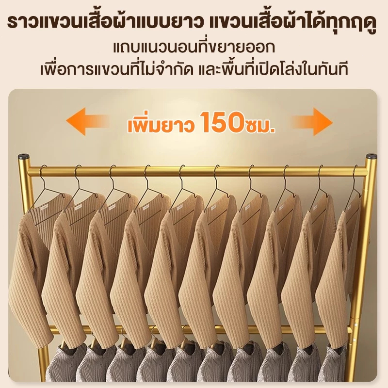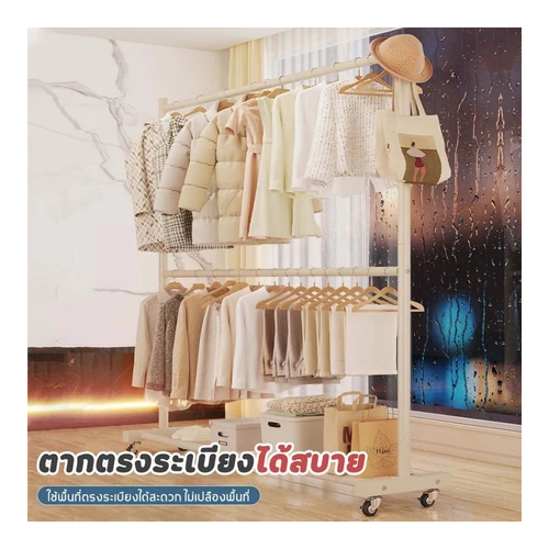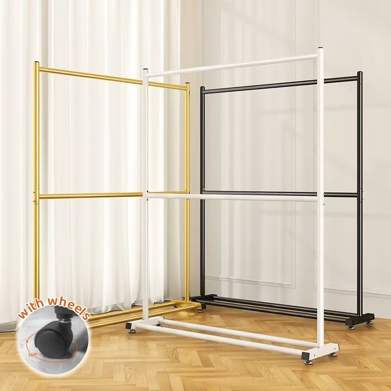 ราวตากผ้าสองชั้นพร้อมล้อเลื่อน 200 ซม. หนาเหล็กน้ำหนัก 50 กก. ราวตากผ้าเหล็กที่แขวนเสื้อผ้าได้ เหมาะสำหรับอพาร์ทเมนท์