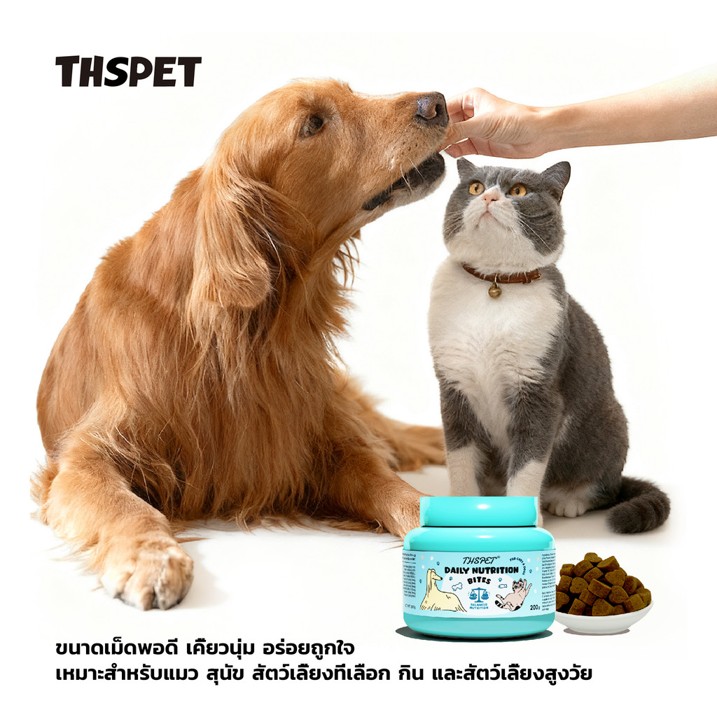 THSPET Daily Nutrition Bites | ขนมเคี้ยวเล่นเพื่อสุขภาพดีของน้องหมาและน้องแมว อร่อย เคี้ยวง่าย ใช้ได้ทุกวัน 200g