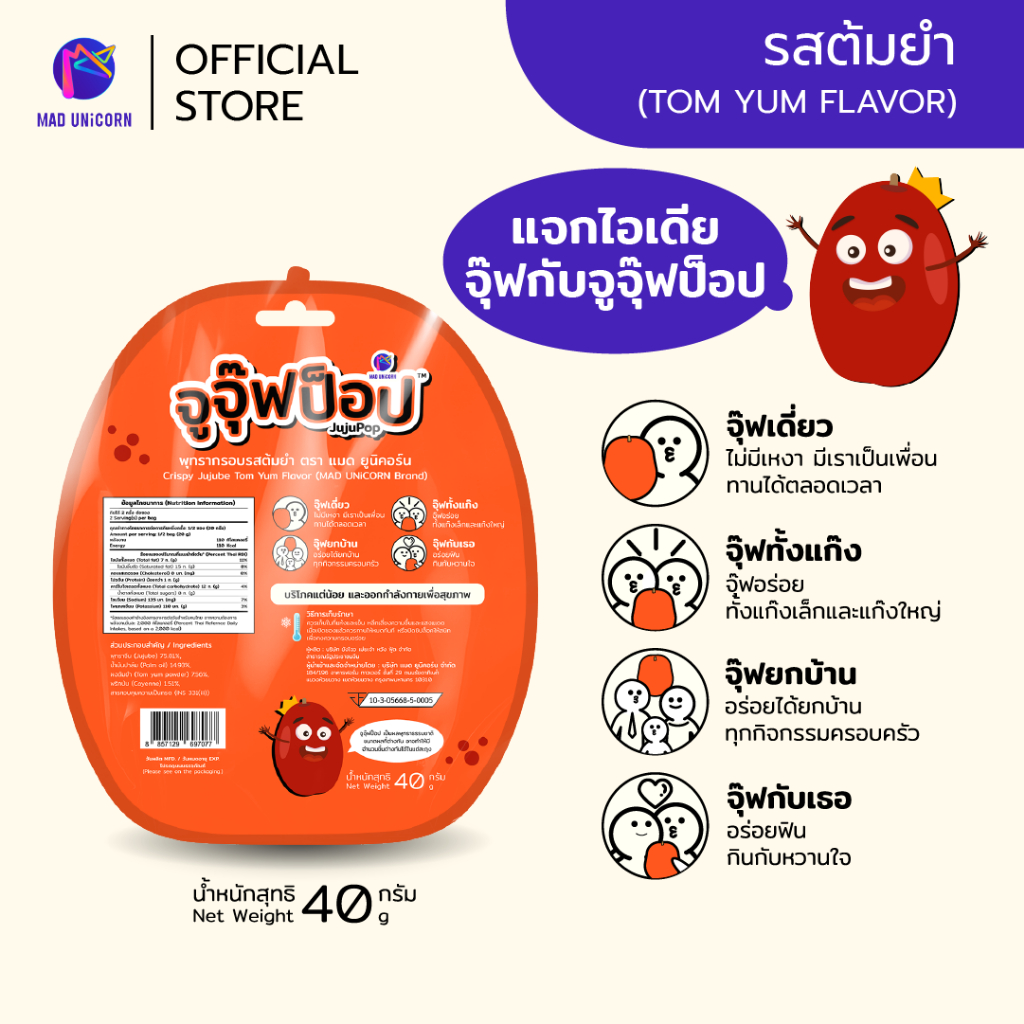 ขนมจูจุ๊ฟป็อป รสต้มยำ 3 ซอง ขนม ผลไม้อบแห้ง พุทรากรอบ ต้มยำ กรอบ อร่อย เผ็ดแซ่บ กินเพลิน