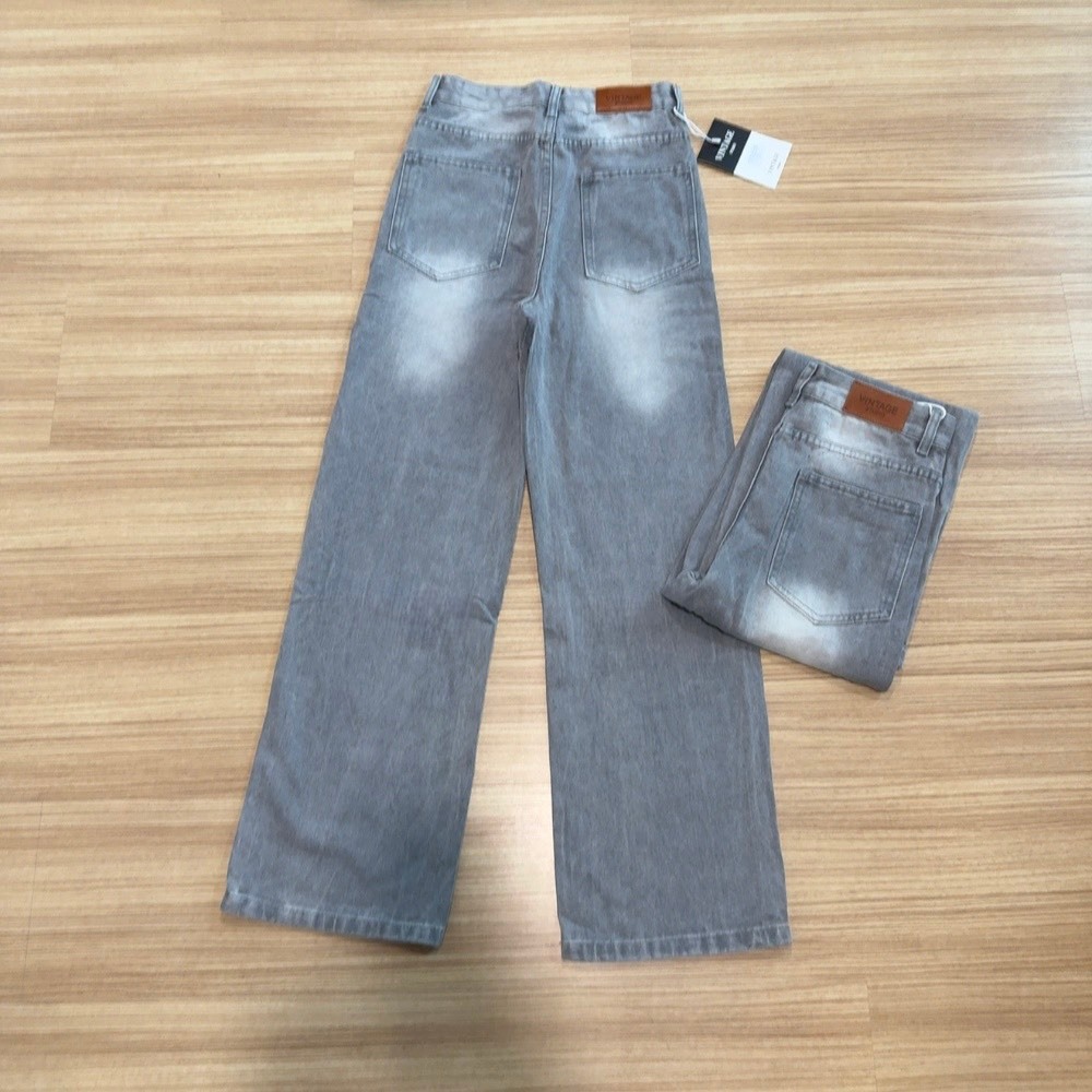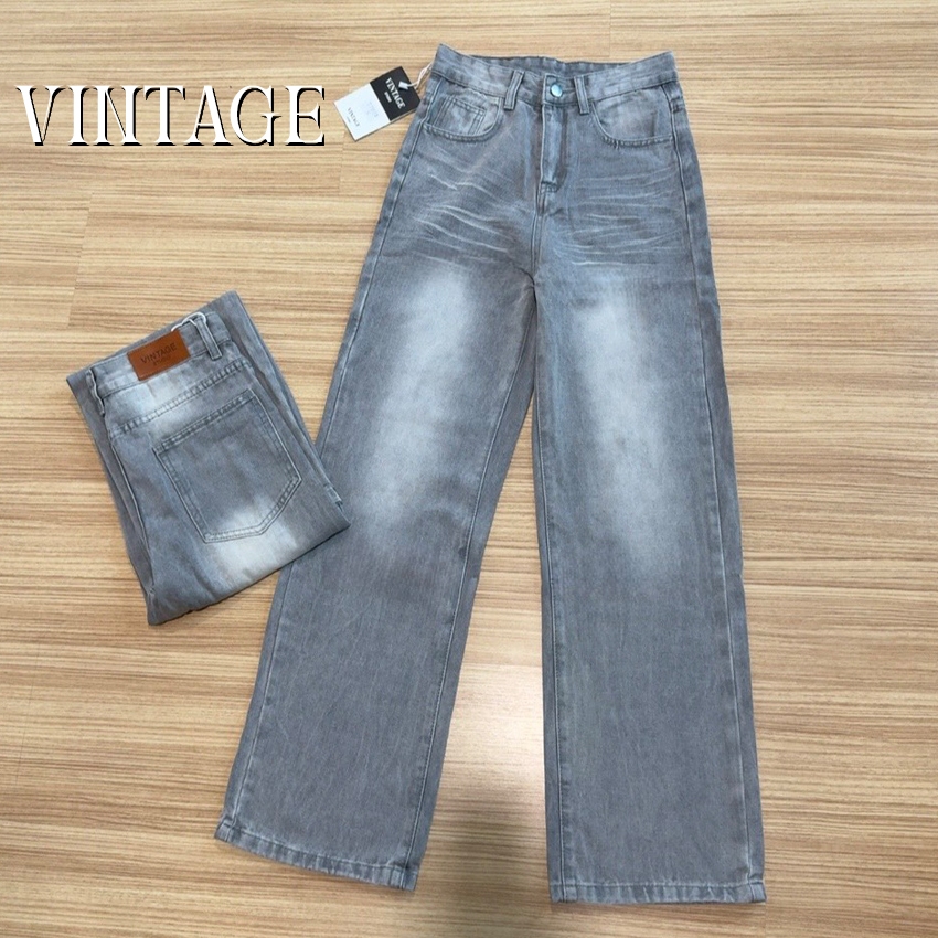 Vintage รุ่น 7221 กางเกงยีนส์ ทรงกระบอก เทานัว แต่งเฟดขา ทรงสวยผ้าไม่ยืด