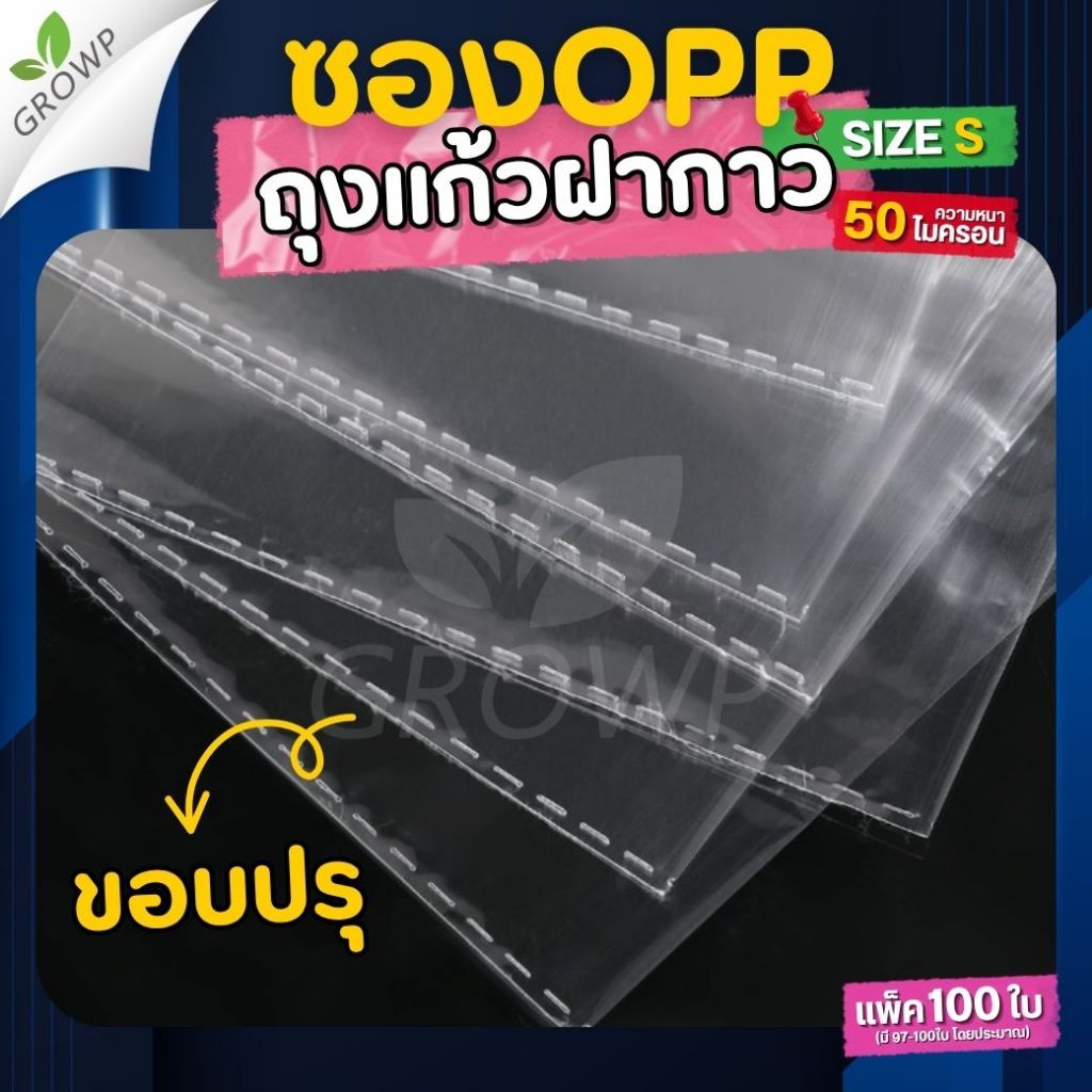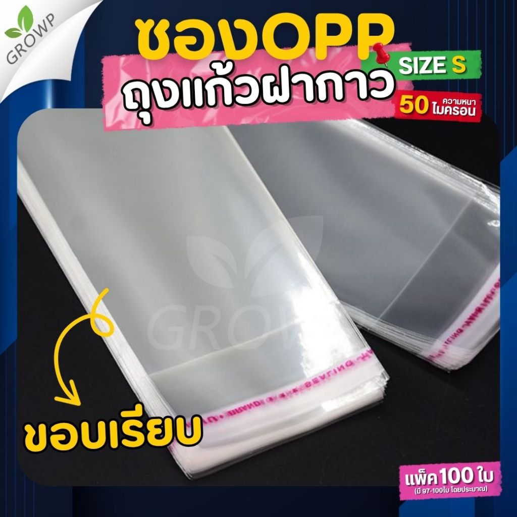 ถุงแก้วฝากาว OPP ขนาดเล็ก SIZE S (แพค100ใบ) ซองพลาสติกใส