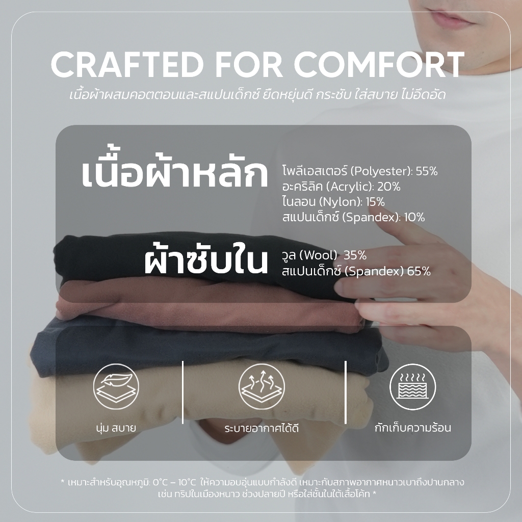 Overchills เสื้อฮีทเทค ผู้ชาย คอปีน แขนยาว เนื้อผ้านุ่ม ใส่สบาย กันหนาวได้ 0 ถึง 10 องศา