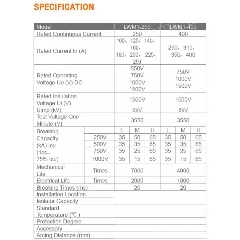 LUMIRA เบรกเกอร์แบบเกาะราง DC MCCB 500V LWM-200A