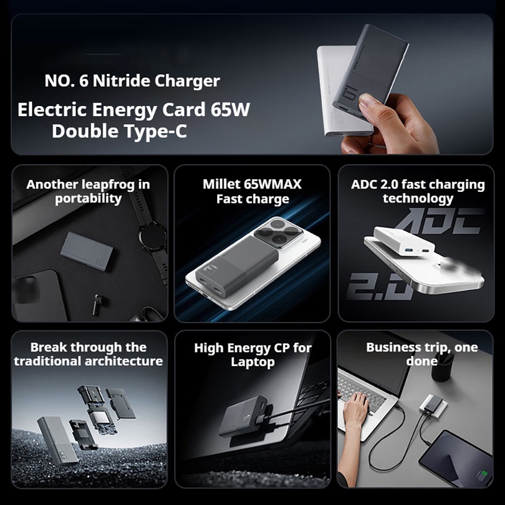ZIM CUKTAKE 65W เครื่องชาร์จเบอร์ 6 การ์ดพลังงาน PD 65W Fast Charger