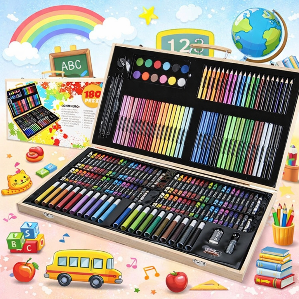 ชุดระบายสีไม้ 180 ชิ้น ครบจบในกล่องเดียว สำหรับเด็ก 3 ปีขึ้นไป สีหลากหลายรูปแบบ สำหรับงานศิลปะ