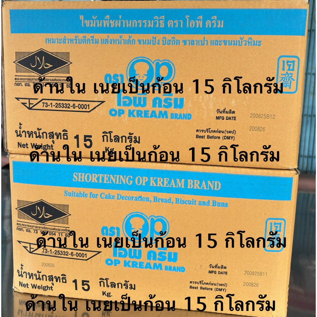 เนยขาว 1 ก้อน ตักใช้ ตราโอพีครีม ในลังเป็นก้อน 15 กิโลกรัม