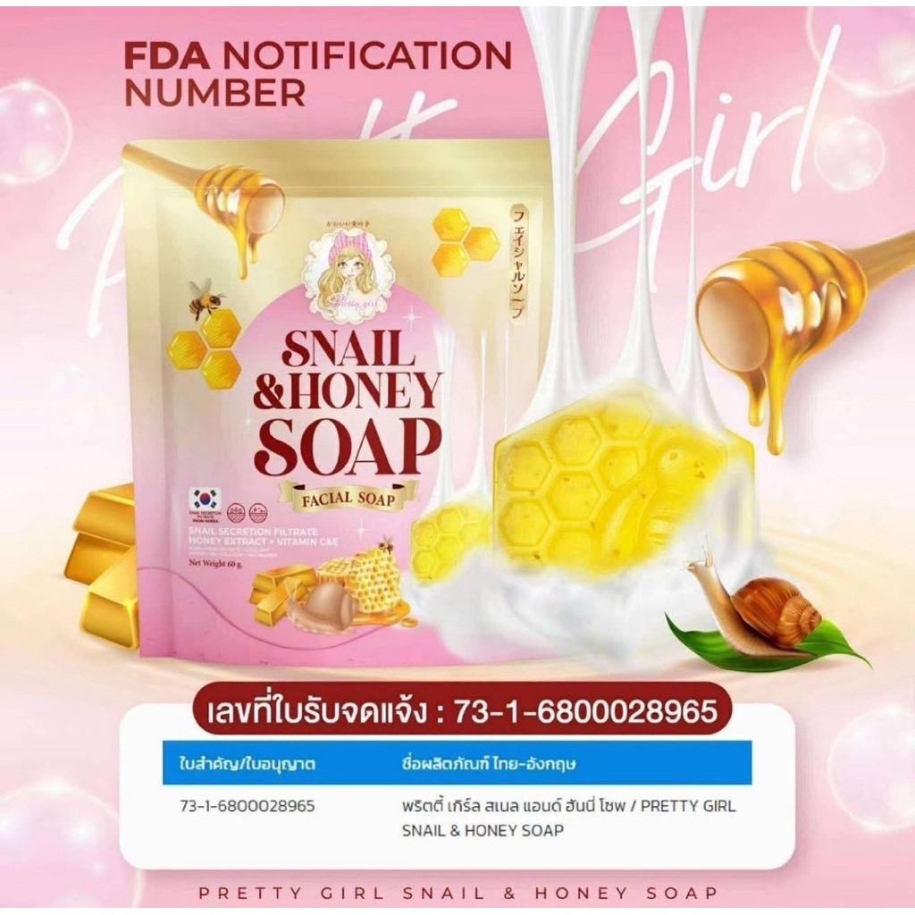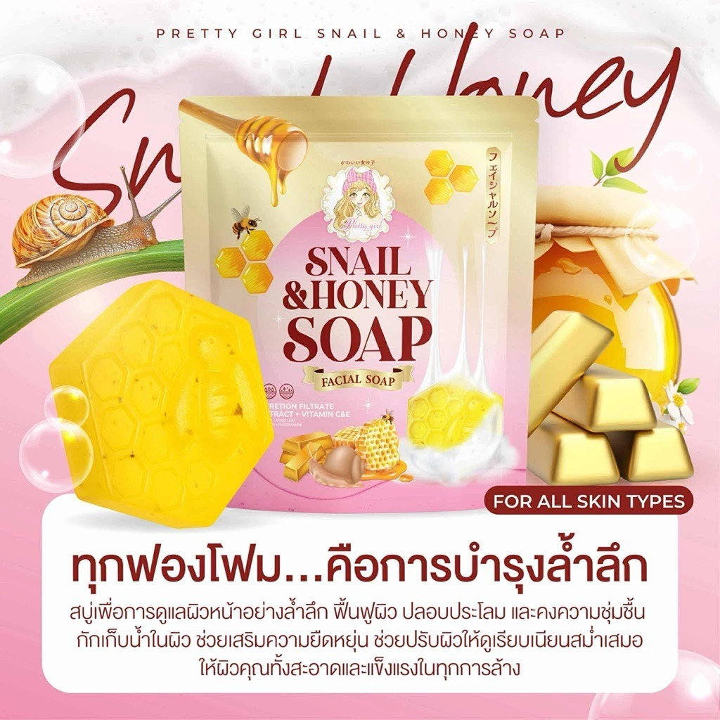 สบู่พริตตี้ เกิร์ล Pretty girl Snail & Honey Soap สบู่เมือกหอยทาก (โปรโมชั่น 2 ก้อน 115.-)
