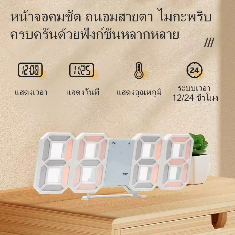 นาฬิกาดิจิตอล 3D LED แสดงอุณหภูมิและวันที่ ทันสมัย เหมาะสำนักงาน ห้องนอน หอพัก ของขวัญปีใหม่