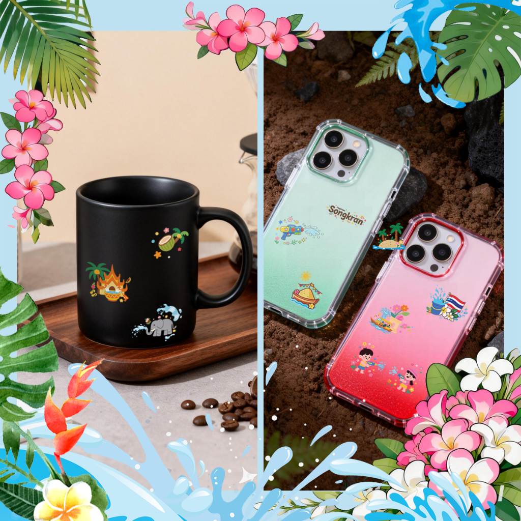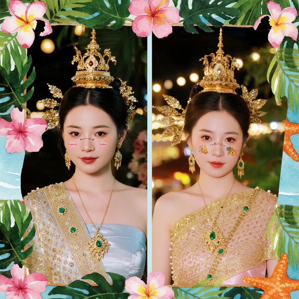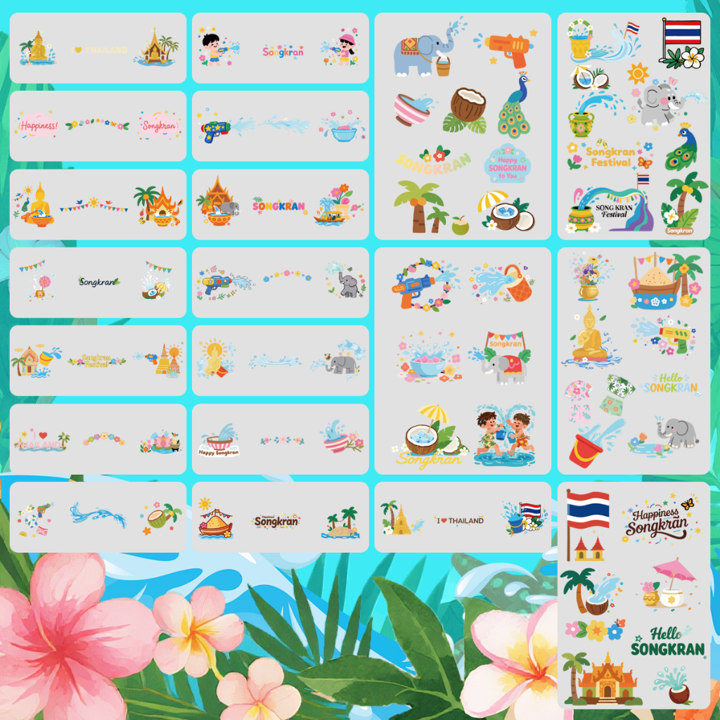 【ส่งจากไทย】สติกเกอร์สงกรานต์ กันน้ำ ติดง่าย ลอกง่าย สำหรับงานเล่นน้ำปีใหม่ไทย สติกเกอร์แต่งหน้าสงกรานต์ -515