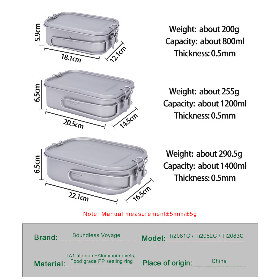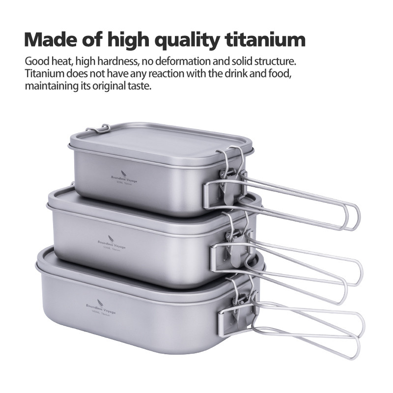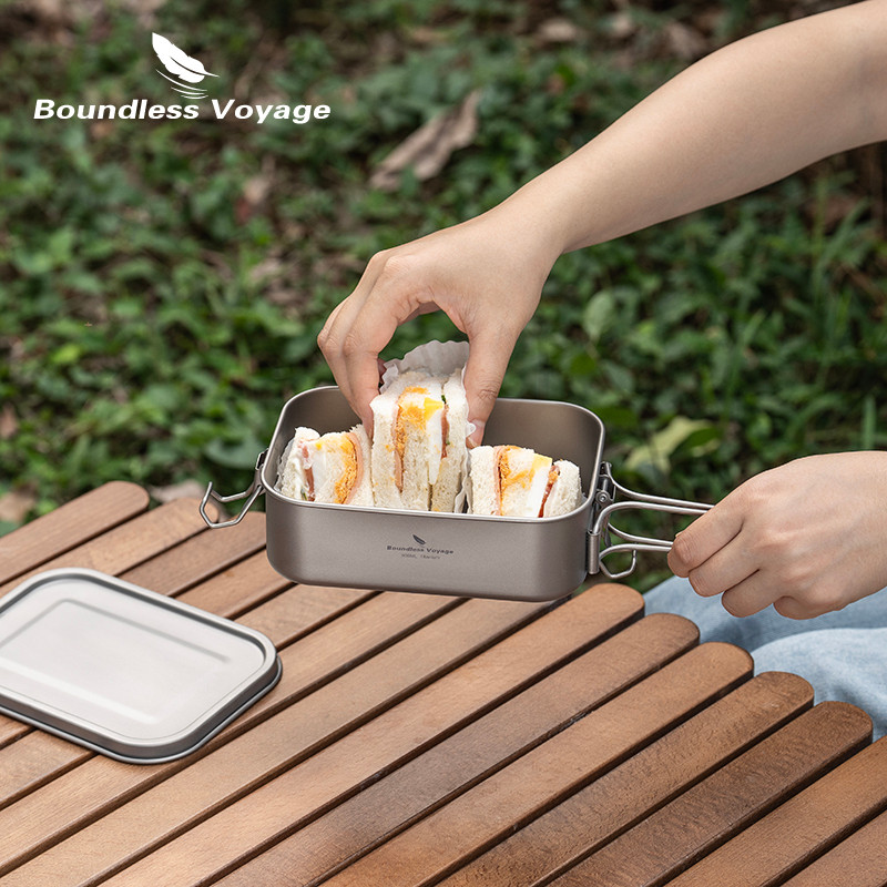 Boundless Voyage Titanium Bento พร้อมฝาปิดและที่จับกลางแจ้ง Camping อาหารค่ํากล่องแบบพกพาเครื่องครัวรั่วกล่องอาหารกลางวันคอนเทนเนอร์