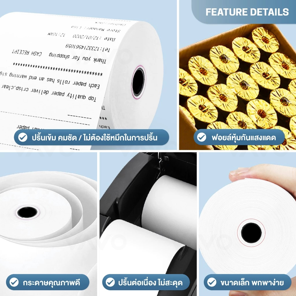 กระดาษใบเสร็จ 80x80 57x50 กระดาษความร้อน ไม่ใช้หมึกพิมพ์ กระดาษปริ้นบิล พิมสลิป Thermal Paper