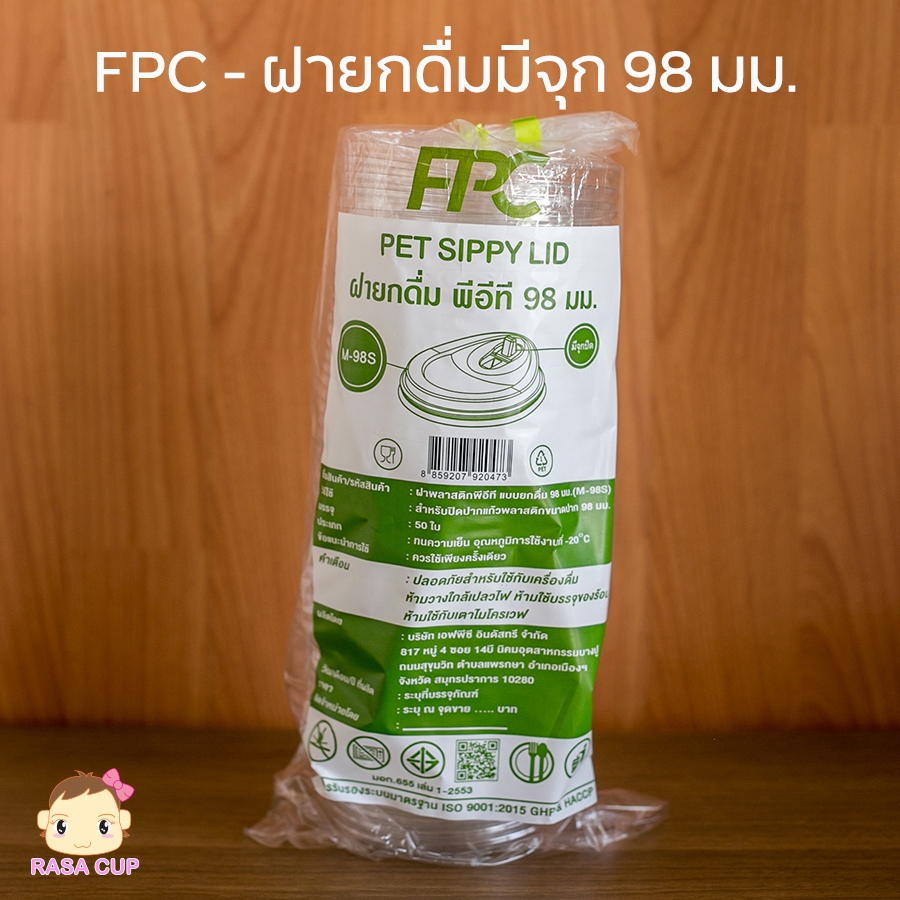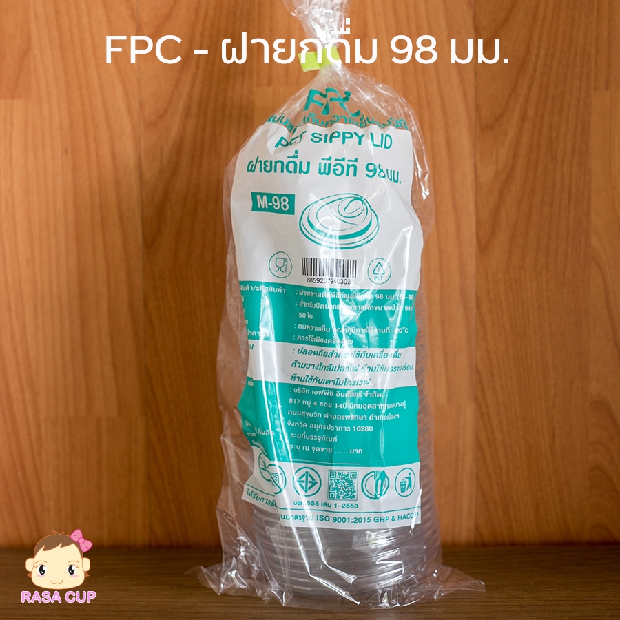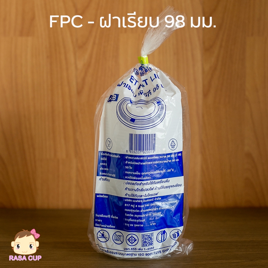 [RCS-ฝา98-100] ฝา PET สำหรับแก้วปาก 98 มม. ยี่ห้อ FPC มีแบบฝาให้เลือกด้านใน บรรจุ 100 ชิ้น