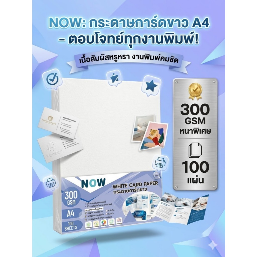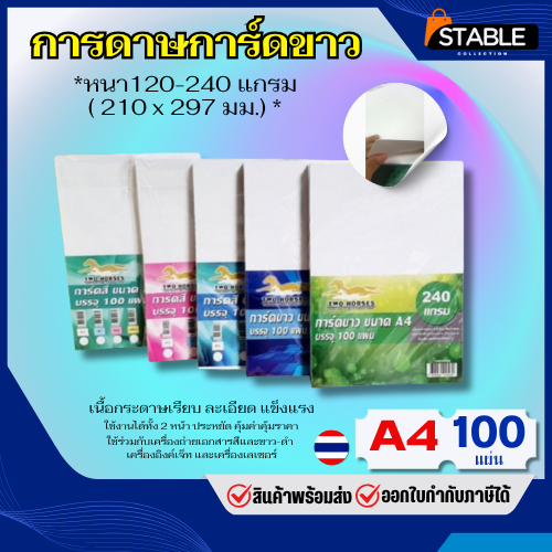 [ส่งด่วน] กระดาษการ์ดขาว A4 หนา120-240 แกรม( 210 x 297 มม.) บรรจุ 100 แผ่น