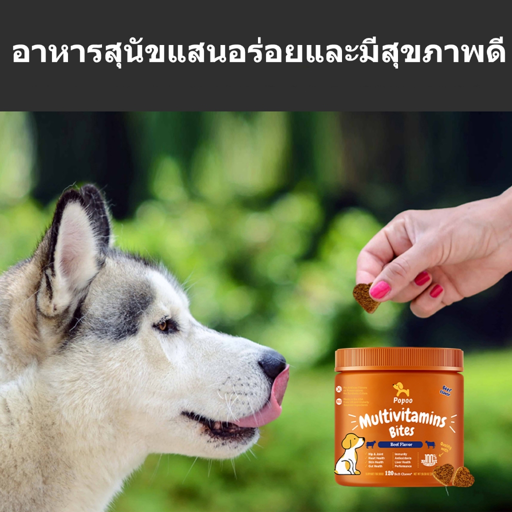 Popoo Multivitamins for Dogs Treats อาหารสุนัข วิตามิน ขนมสุนัข วิตามินรวมสุนัข บำรุงสะโพกและข้อต่อสุขภาพหัวใจ 120ชิ้น