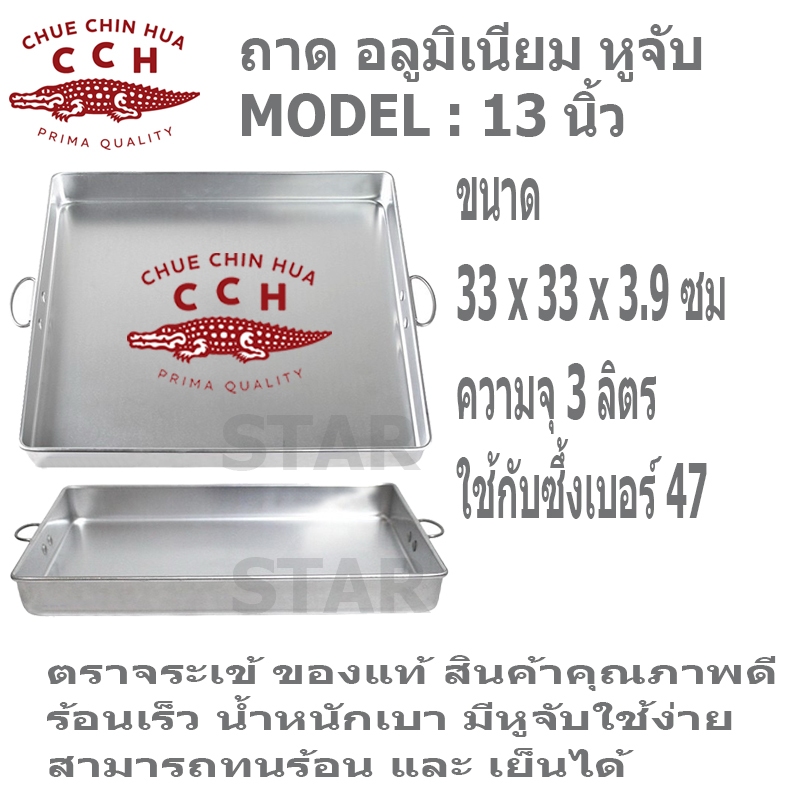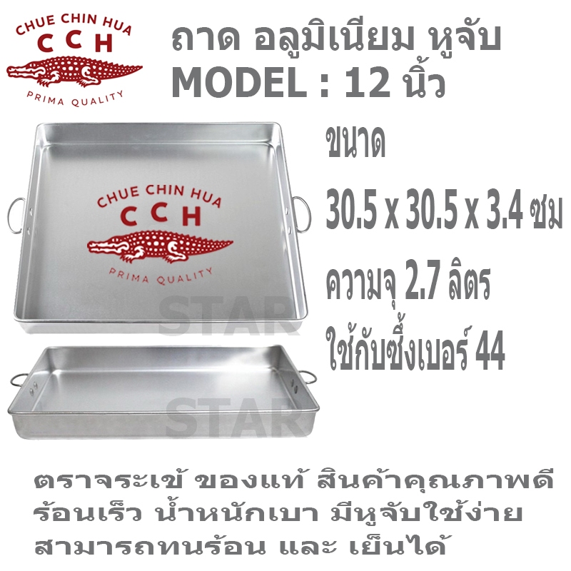 ตราจระเข้ ถาดนึ่งขนมสี่เหลี่ยม มีหูจับ อลูมิเนียม มีหูจับ ถาดนึ่งขนมไทย เค้ก เบเกอรี่ ถาดอบ วุ้น ขนมชั้น