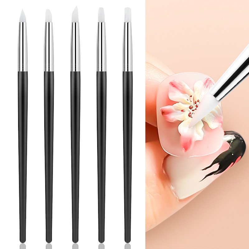 UR SUGAR 5 ชิ้น/เซ็ต Professional ซิลิโคนเล็บแปรง UV เจล Polish Tip 3D ภาพ DIY Dotting แปรงภาษาโปลิชคําปากกา DIY เครื่องมือทําเล็บ