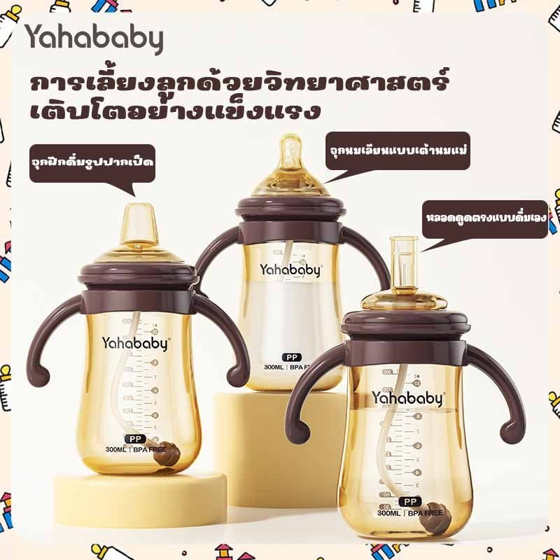 ขวดนม PP 10 ออนซ์ พร้อมที่จับและจุกนม หลอดดูดนม อัตโนมัติ ขวดนมเด็ก 1-3 ปี สําหรับเด็กอายุ ร้านไทยพร้อมส่ง ขวดนมคอกว้าง