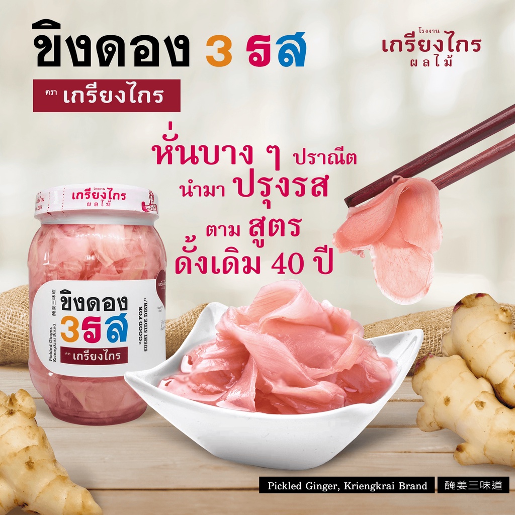 เกรียงไกรผลไม้ - ขิงดอง 3 รส มีให้เลือก 2 สูตร ผักดอง เครื่องเคียง สำหรับประกอบอาหาร และทานเล่น