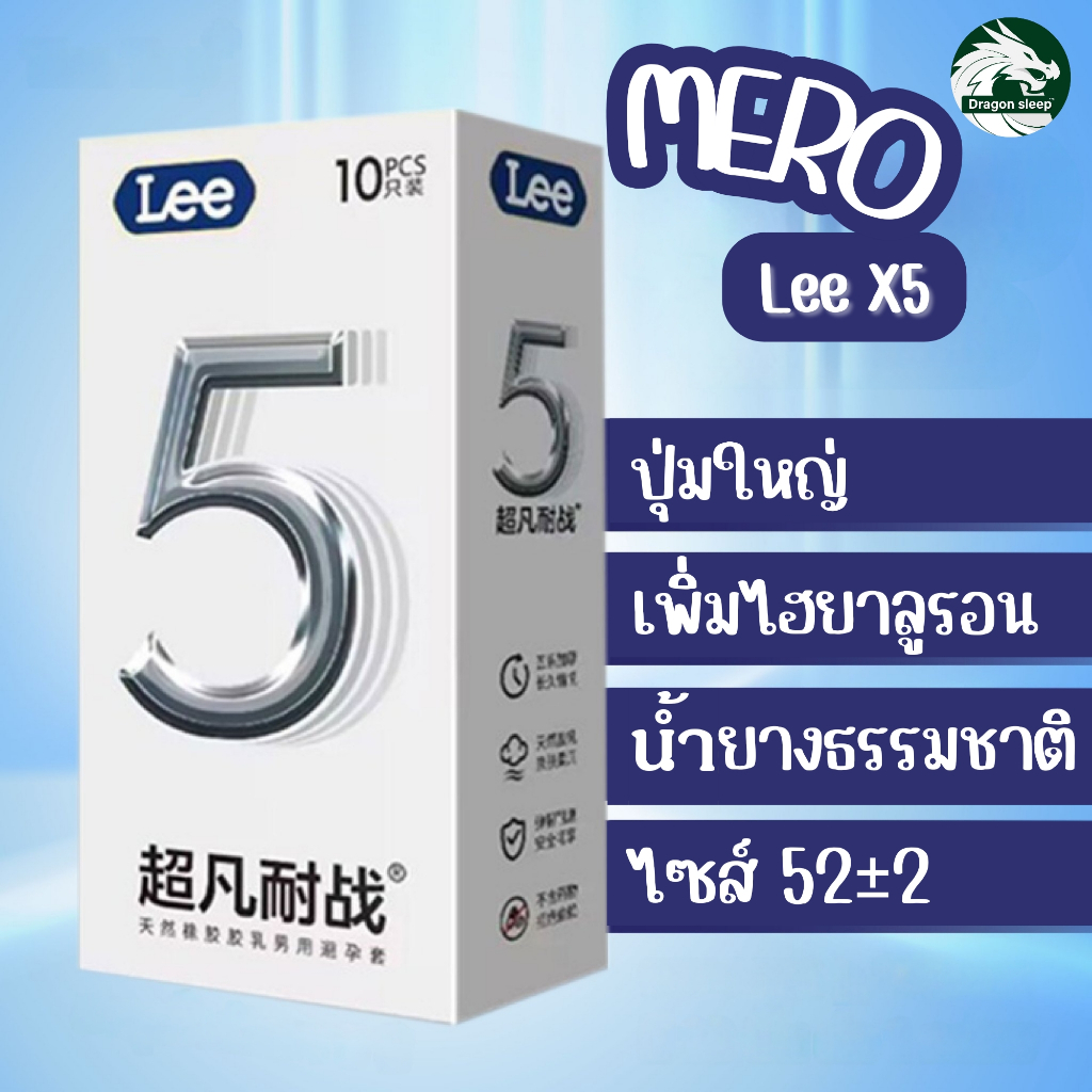 MERO Lee X5 ถุงยางอนามัย ชนิดผิวขรุขระ ปุ่ม ไซส์ 52±2 เพิ่มน้ำหล่อลื่นไฮยาลูรอน