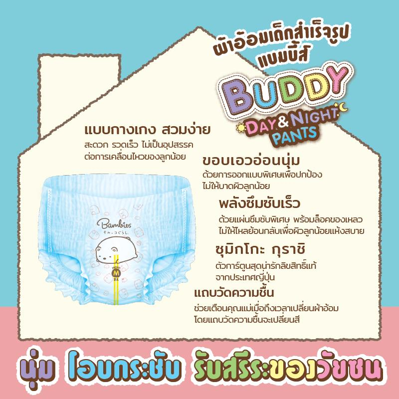 Bambies แบมบี้ รุ่นบัดดี้ แบบกางเกงไซส์ M-XXL !!! ยกลัง3ห่อใหญ่