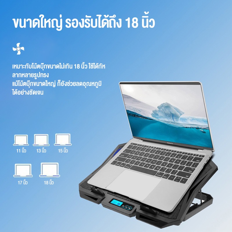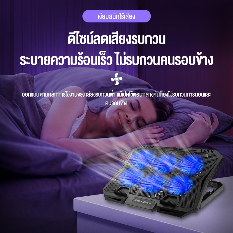 OLYPS ที่วางโน้ตบุ้ค สามารถปรับแรงลมได้ แท่นวางโน้ตบุ้ค Laptop Cooling Pad พัดลมระบายความร้อน 6LED laptop cooler