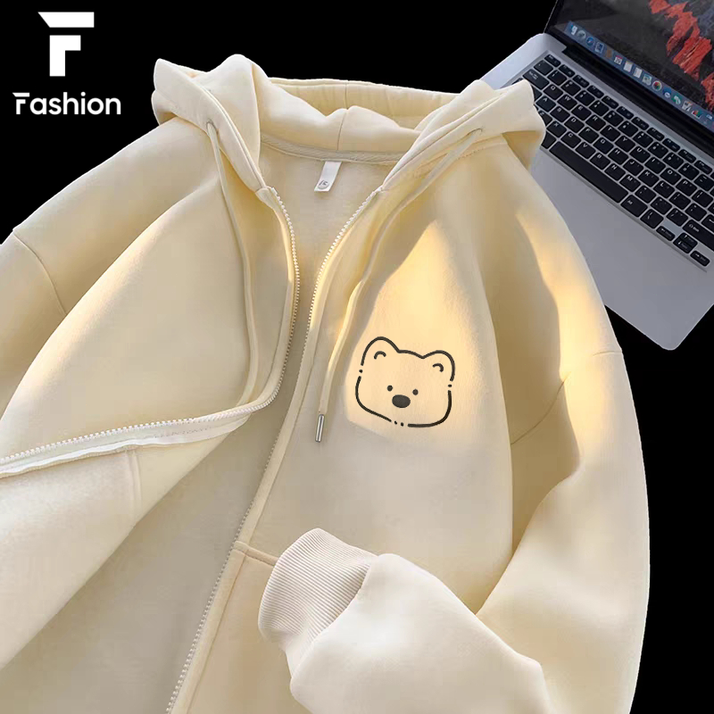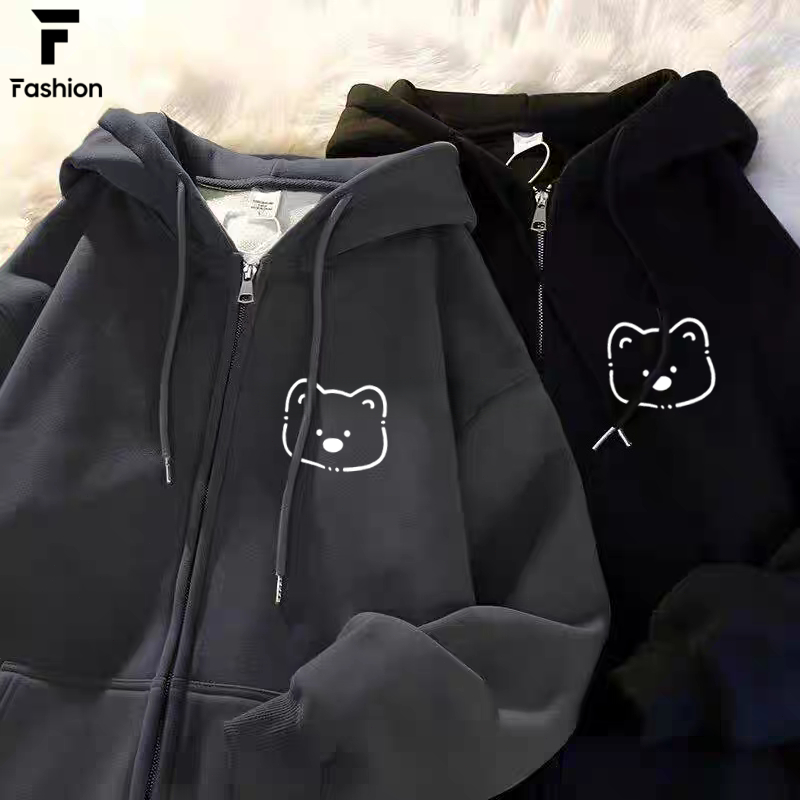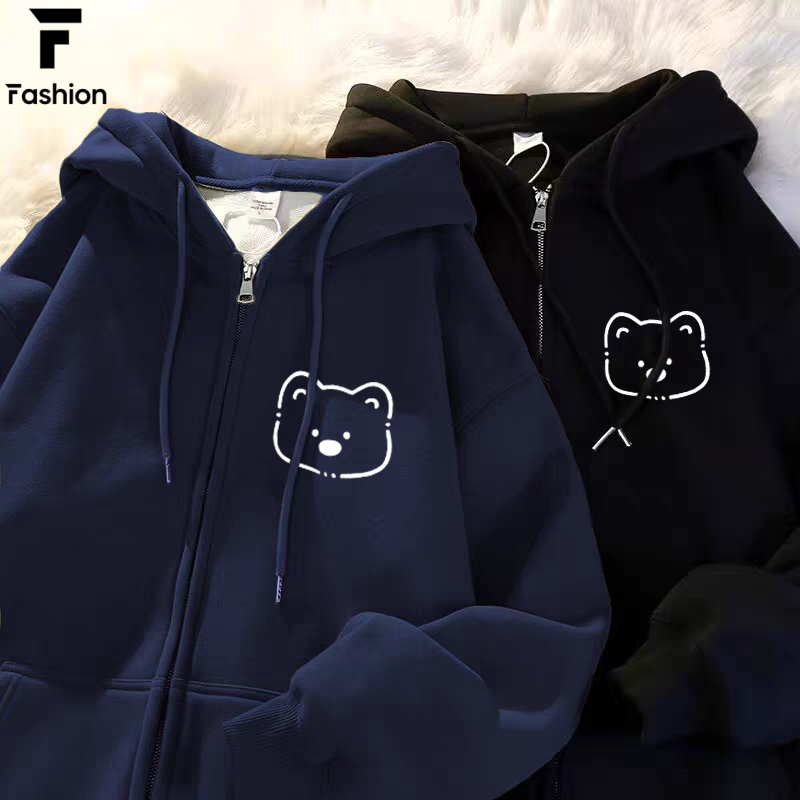เสื้อกันหนาว คลุมแขนยาว มีฮู้ด มีซิป ผ้าสำลี เนื้อผ้านิ่ม ลายการ์ตูน น่ารัก unisex