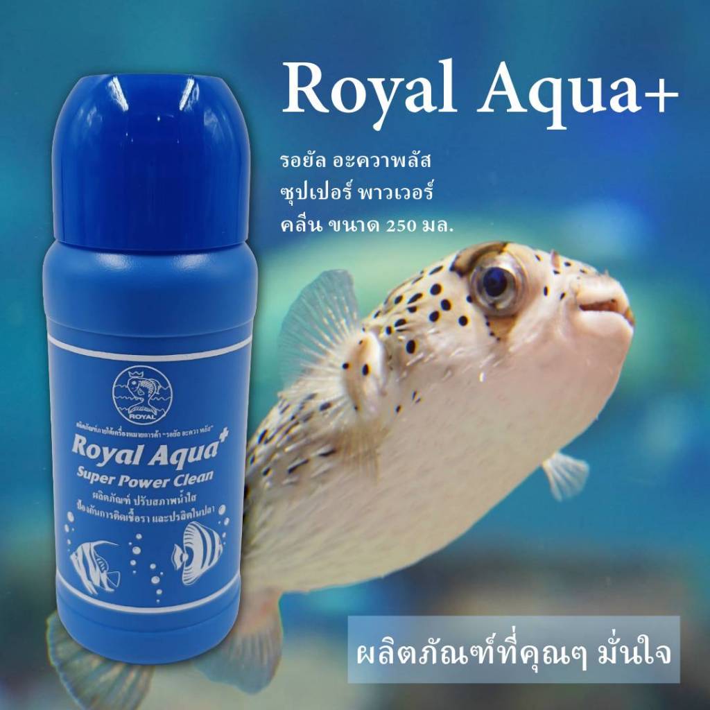ผลิตภัณฑ์ปรับสภาพน้ำใส รอยัลอะควาพลัส ซุปเปอร์พาวเวอร์คลีน Royal Aqua Plus Super Power Clean ขนาด 250 มล. ฝาน้ำเงิน