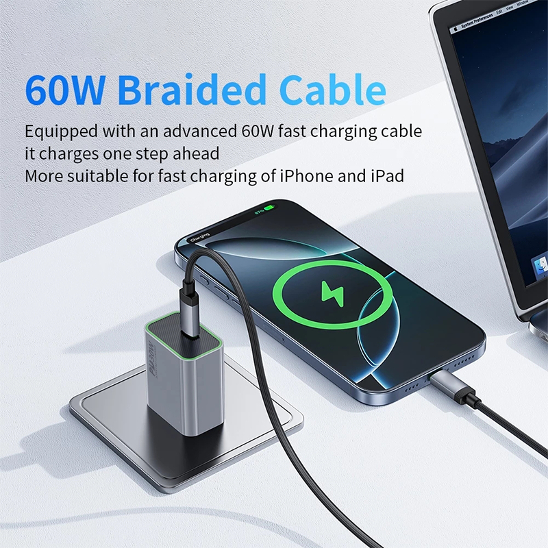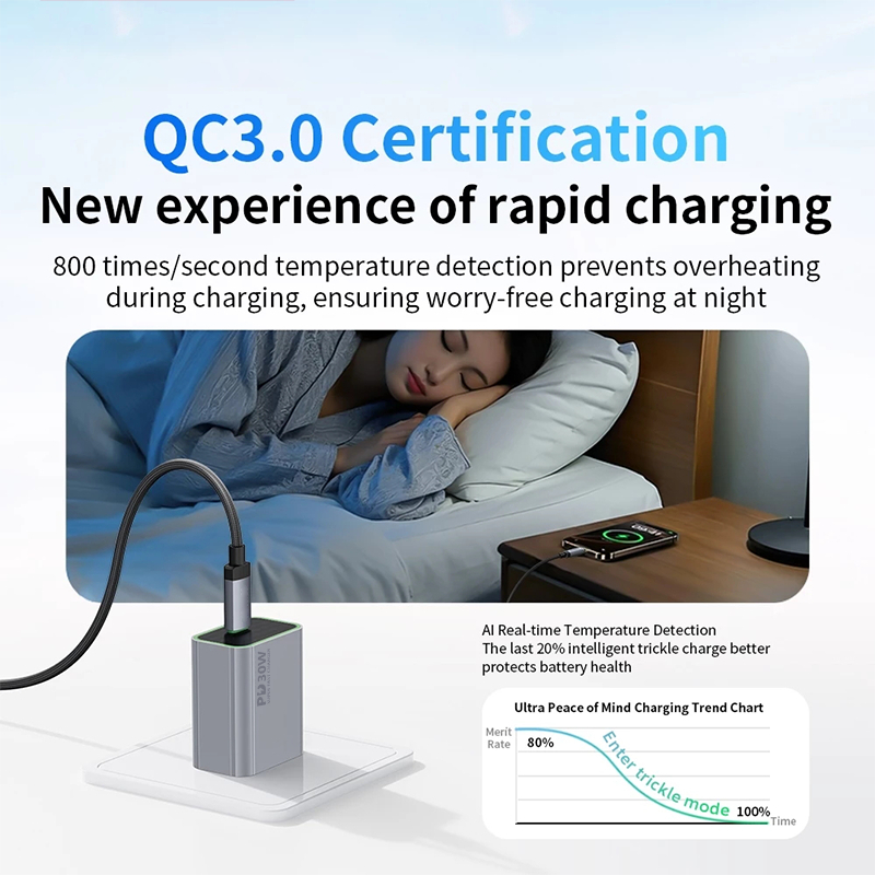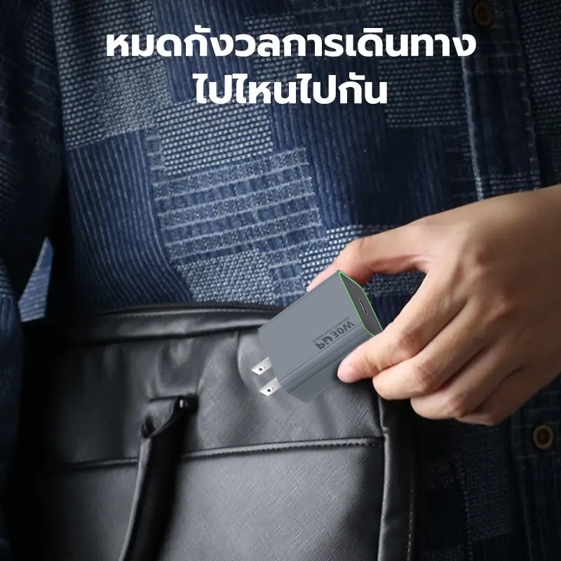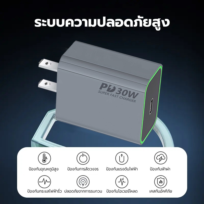OAISHE สายทอสีดํา+อะแดปเตอร์ พีดี30ว สีเทา แสดงสถานะที่ทนต่อการขีดข่วน รับประกัน 1 ปี