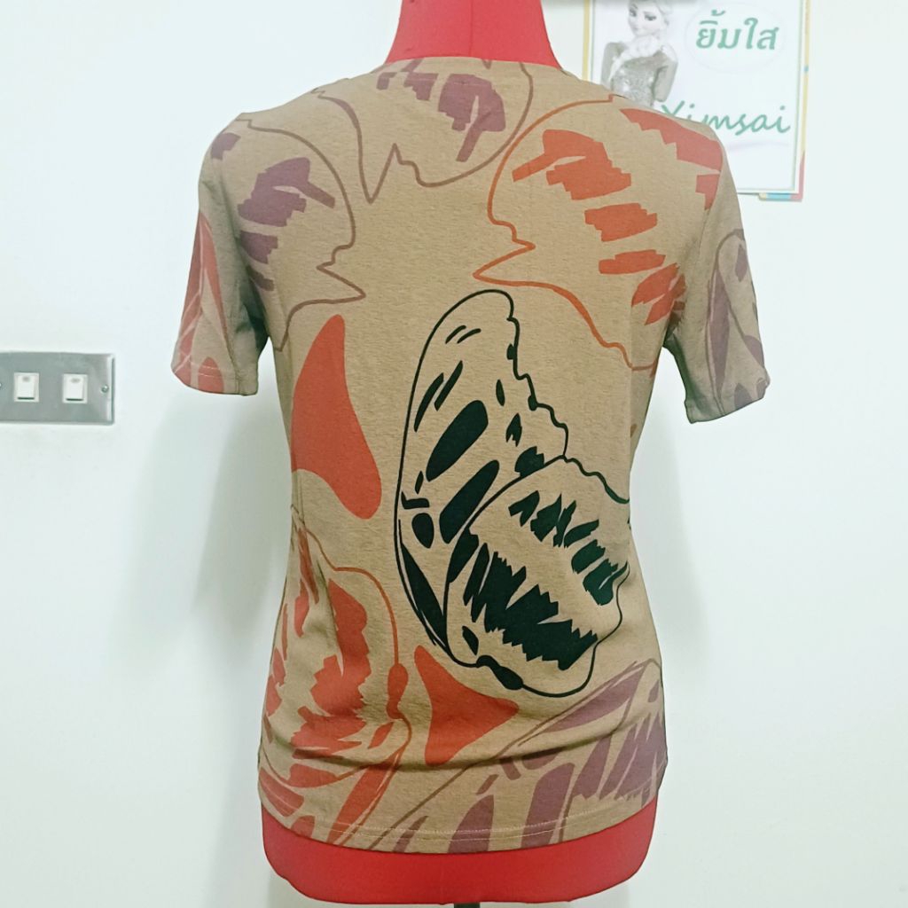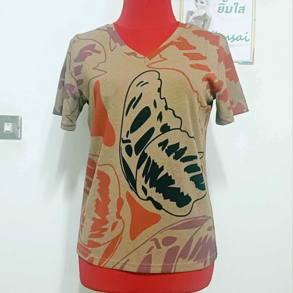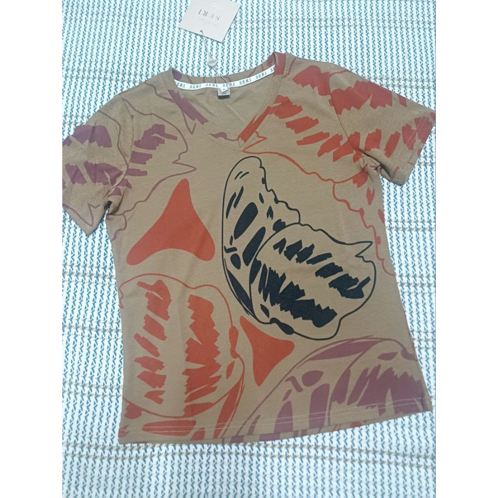 ป้าย Seri เสื้อยืดผ้าสลาฟ คอวี แขนสั้น
